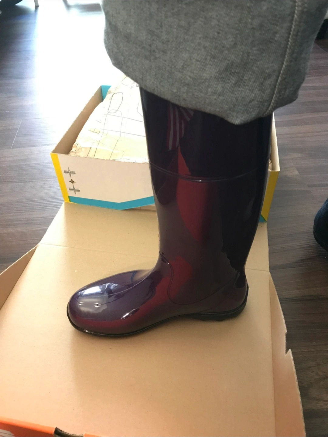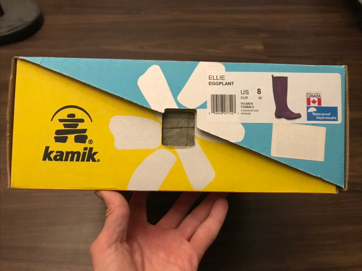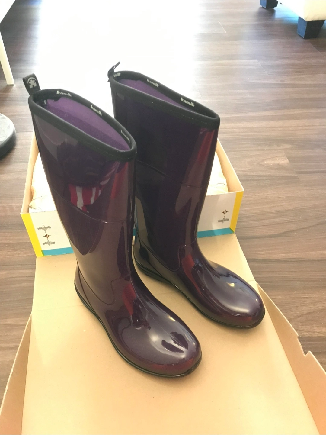 Selling a pair of Kamik Ellie rain boots in eggplant colour, size 8. These boots are waterproof and perfect for rainy days! They come with the original box.