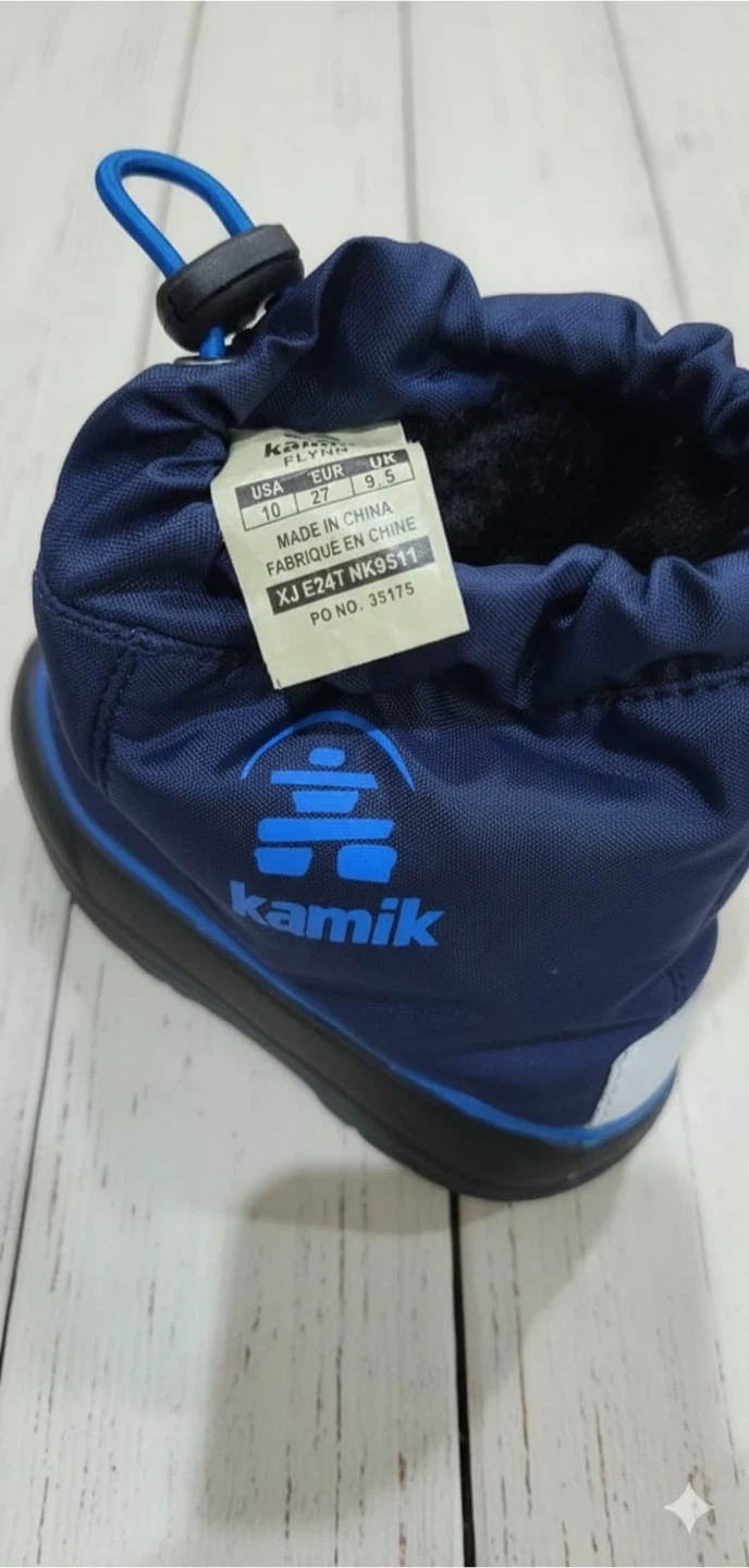 Keep your little one warm with these Kamik snow boots! They are a size 10 and feature a stylish blue and black design