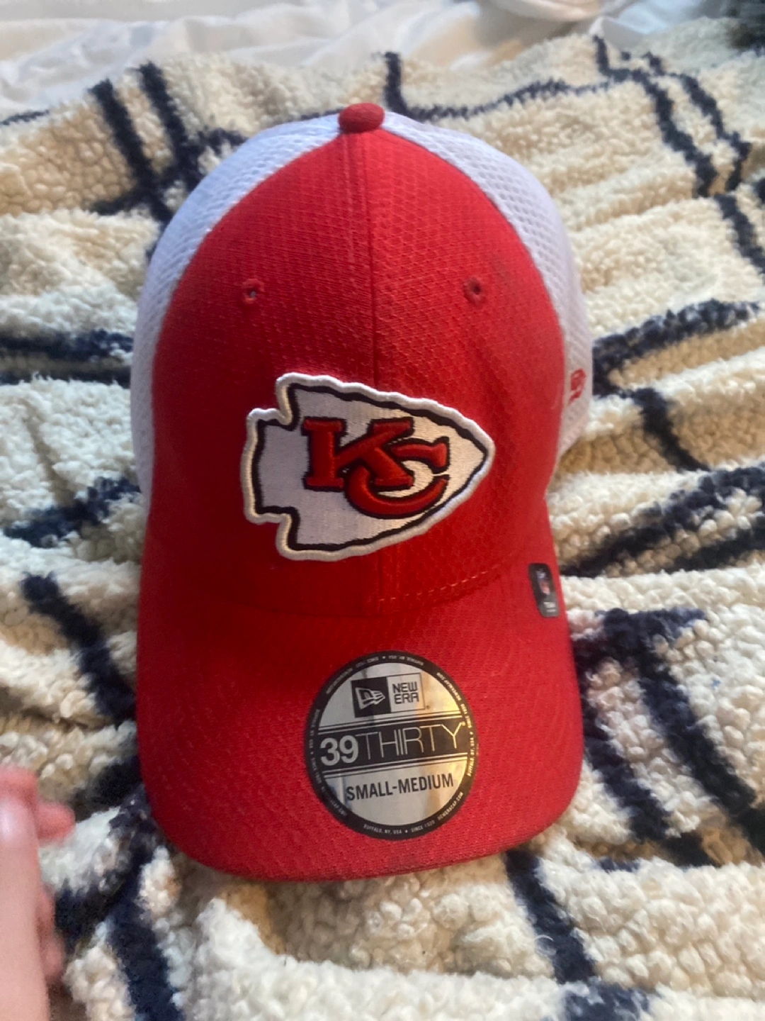 Baseball cap with a curved brim. Mesh back and red top. The Kansas City Chiefs logo displayed at the front. Consider wearing this cap when going outside to enjoy the sun.