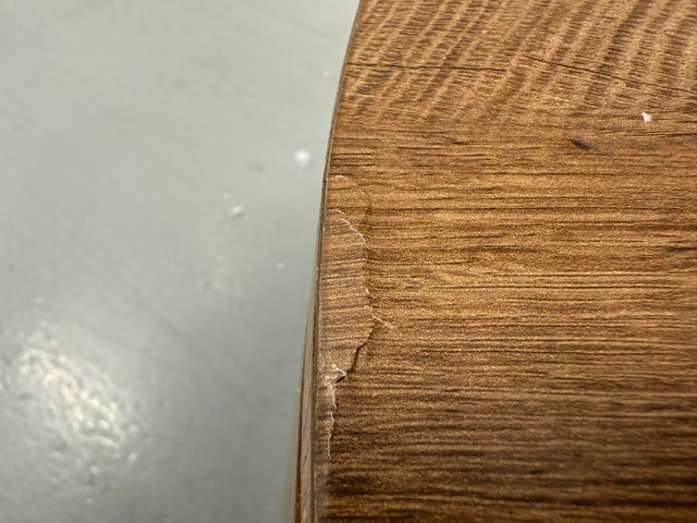 This round Karamjeet coffee table has a faux wood grain finish, metal legs, and dual pull-out storage drawers. It's brand new in the box, but there's some minor damage along the edge as shown in the pictures. Pickup in Mississauga or Etobicoke.