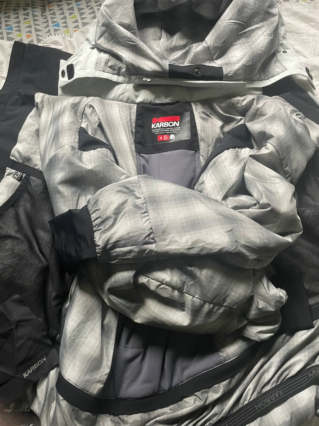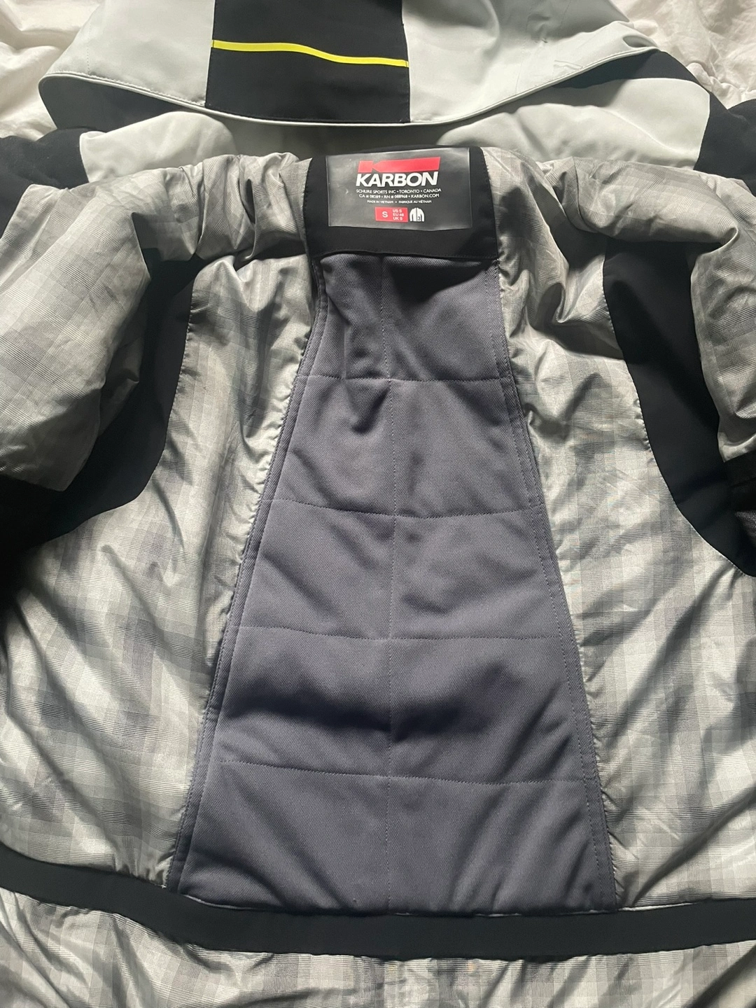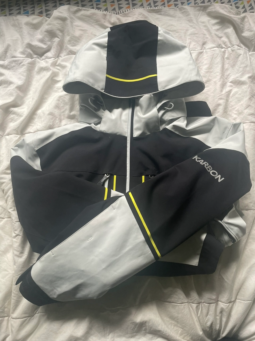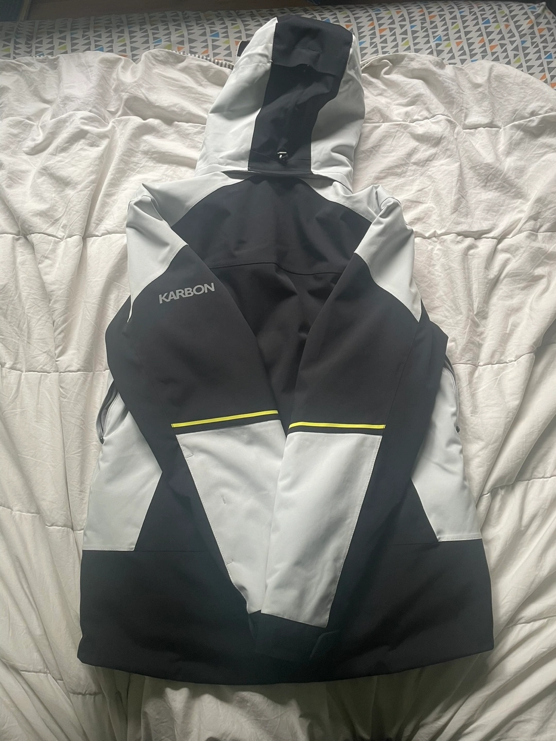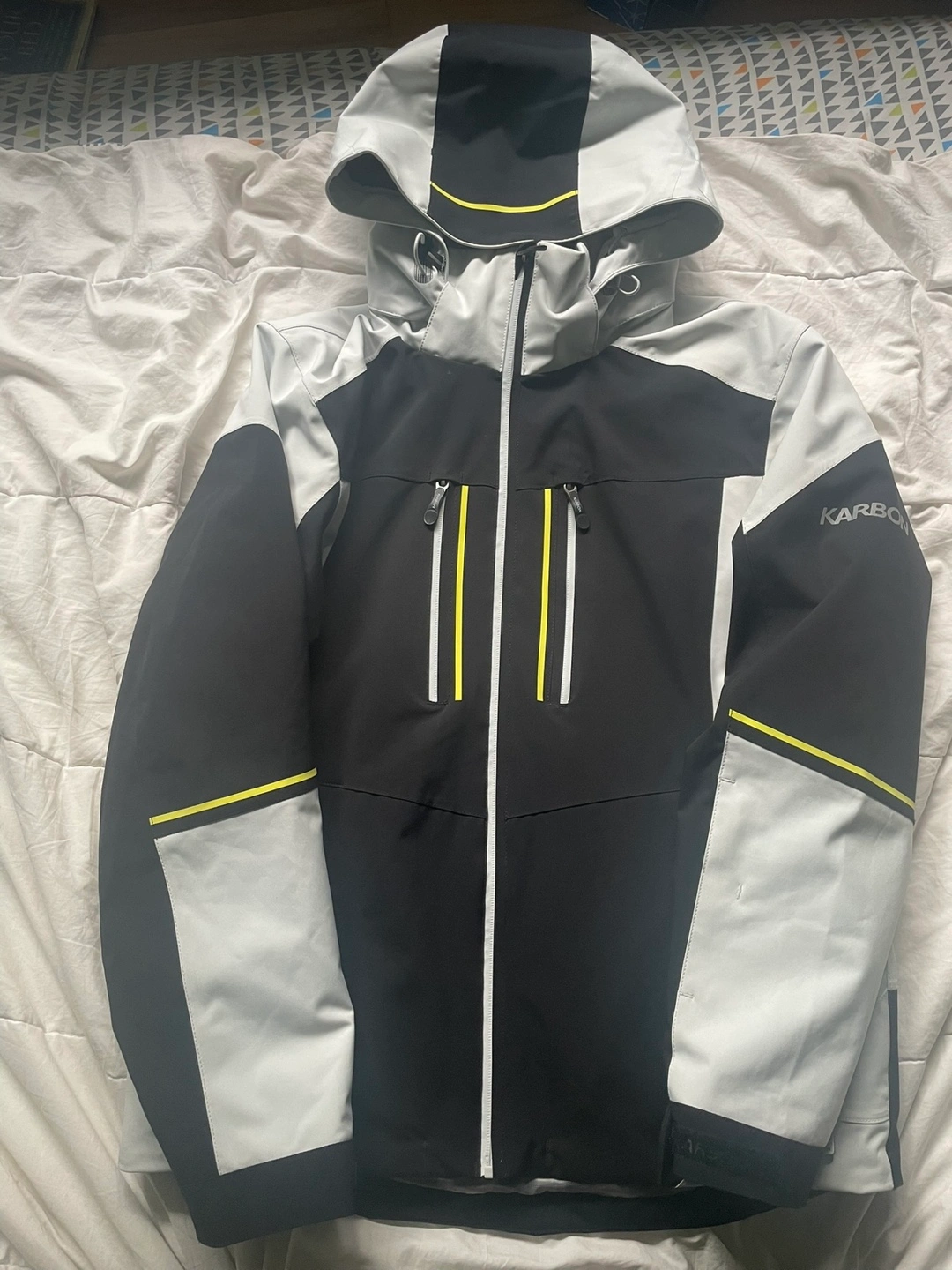 Selling a Karbon fully insulated men’s ski jacket in new condition! It's a size small but can fit someone ranging size small to large well and won’t be too small. It features a stylish black, grey, and yellow design. Perfect for hitting the slopes this winter! Also has an insane amount of pockets. Pickup in North Van