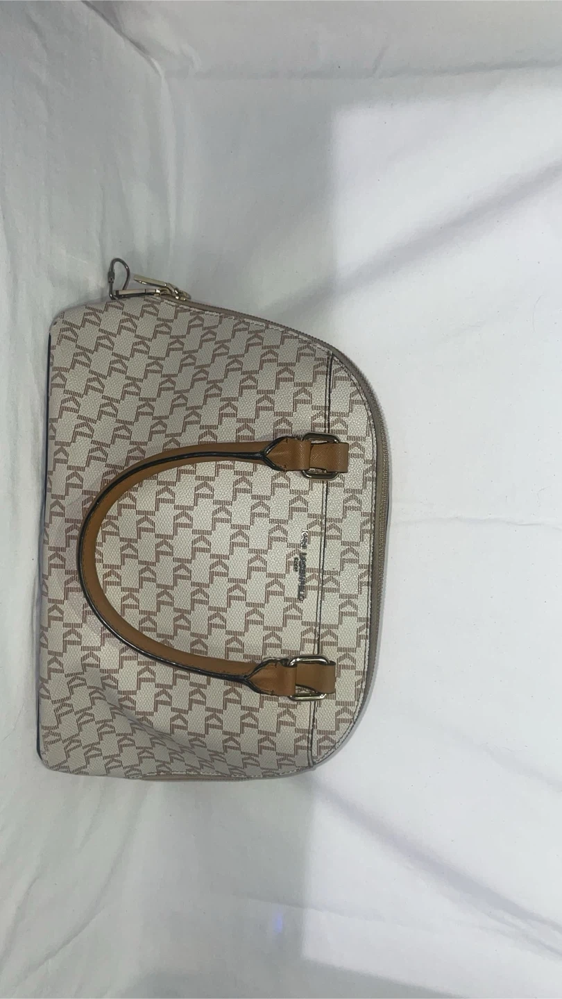 Gently used Karl Lagerfeld satchel with a unique beige patterned design. It's in great shape and ready for a new home!