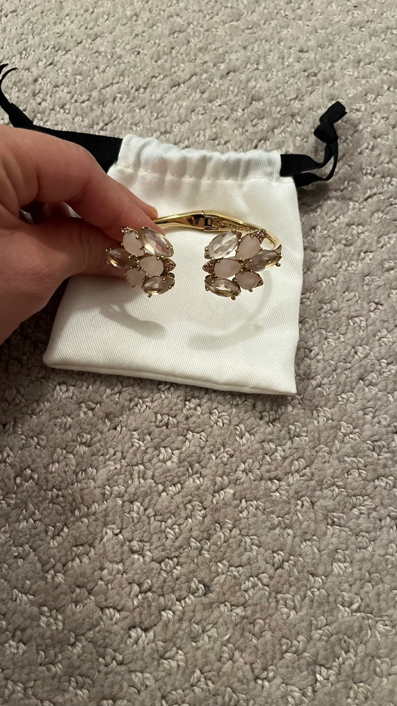 Selling a lovely Kate Spade bangle bracelet! It's gold in colour with pink floral details. Comes with the original Kate Spade pouch for safekeeping