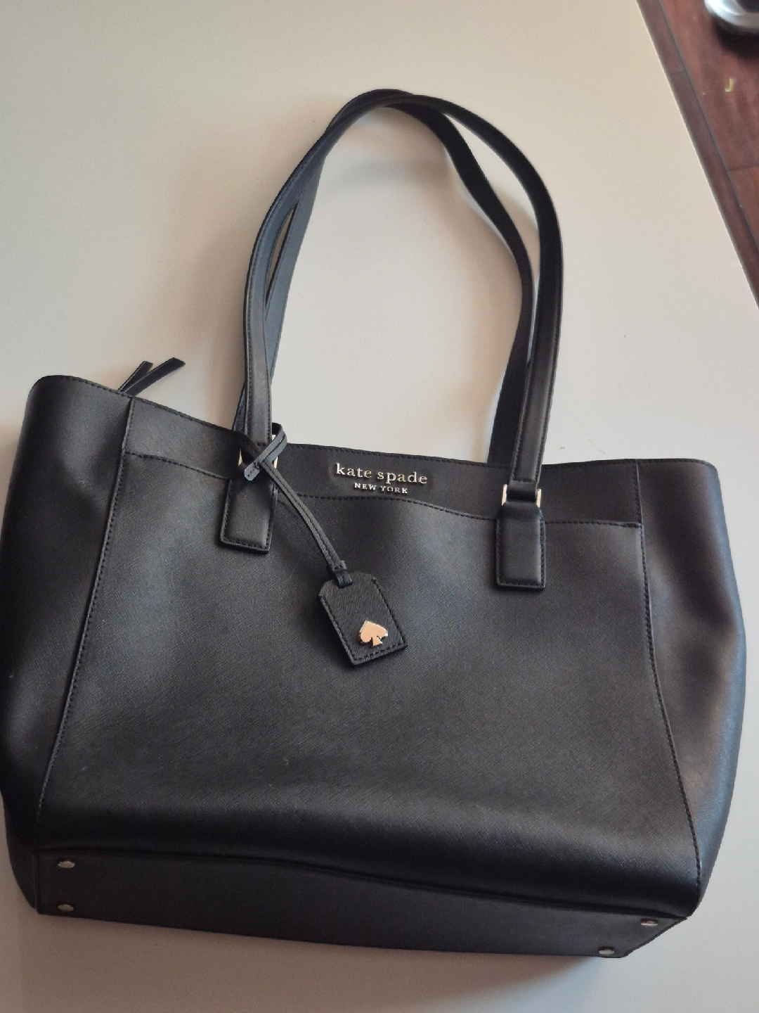 Selling a Kate Spade New York tote bag in black. It's in great shape and perfect for everyday use! The interior has a zipper pocket and the exterior has a sleek, professional look