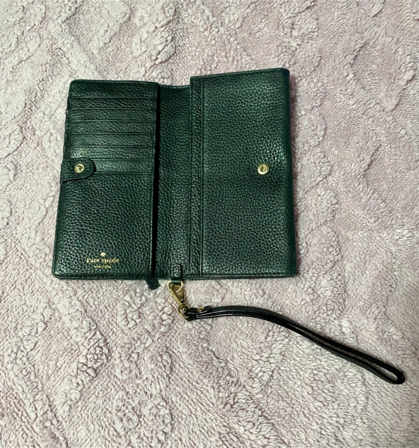 Selling a Kate Spade black leather wristlet wallet in great condition. There’s some wear to the gold hardware. See pics. * Please check out my other listings of Skin care, make up and more! Thanks