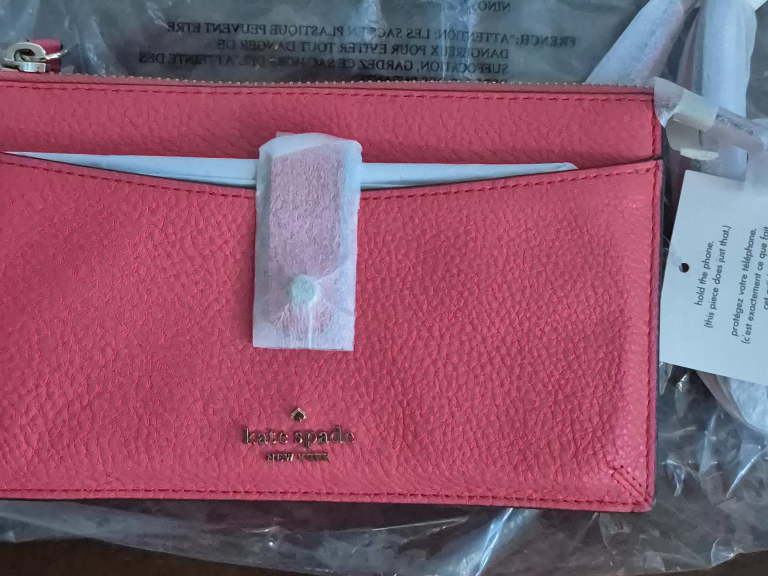 Selling a brand new Kate Spade phone crossbody in a beautiful coral pink colour! It's perfect for holding your phone and a few essentials when you're on the go. The texture is lovely and the design is classic Kate Spade. Never been used and still in its original packaging! Cash and meet up at Bellamy and Eglinton Ave. East