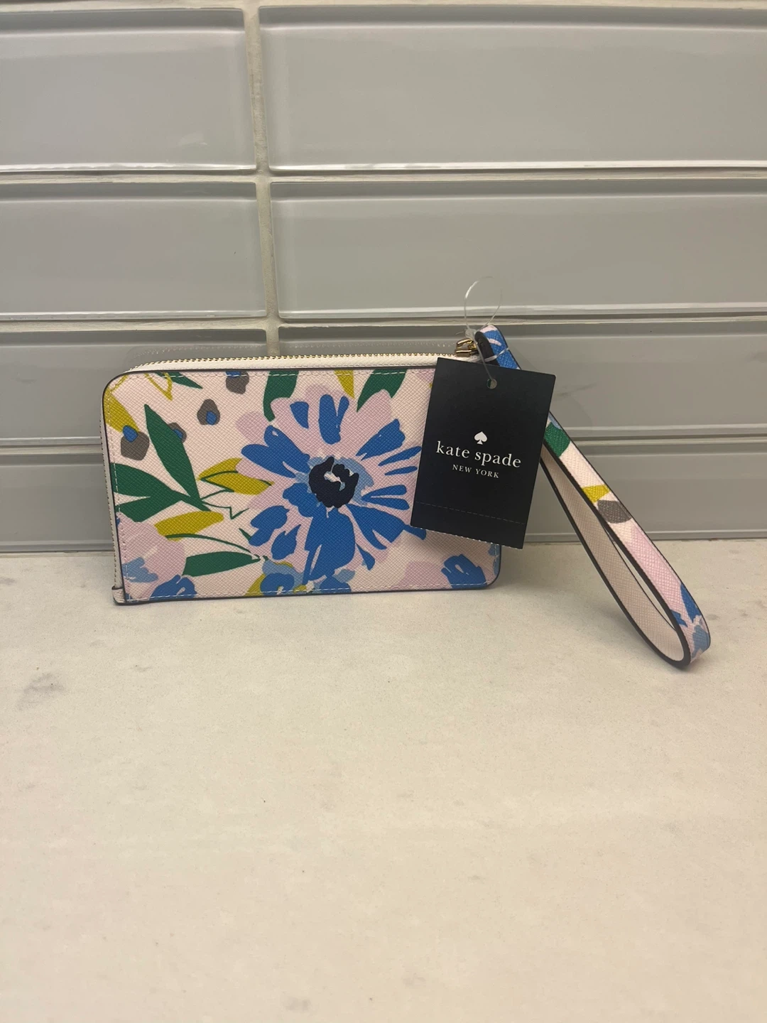 This is a brand new Kate Spade wristlet wallet with a beautiful floral design! The model is KXV53 and it's in the cream multi colour. Comparable value at CAD $129