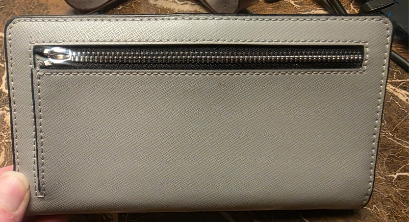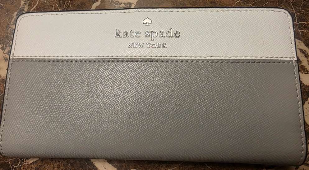 Selling a Kate Spade New York wallet in a stylish grey and white colour combination. It features a convenient zipper on the back and plenty of space inside for cards and cash. Never been used. Regular price $219 CAD.