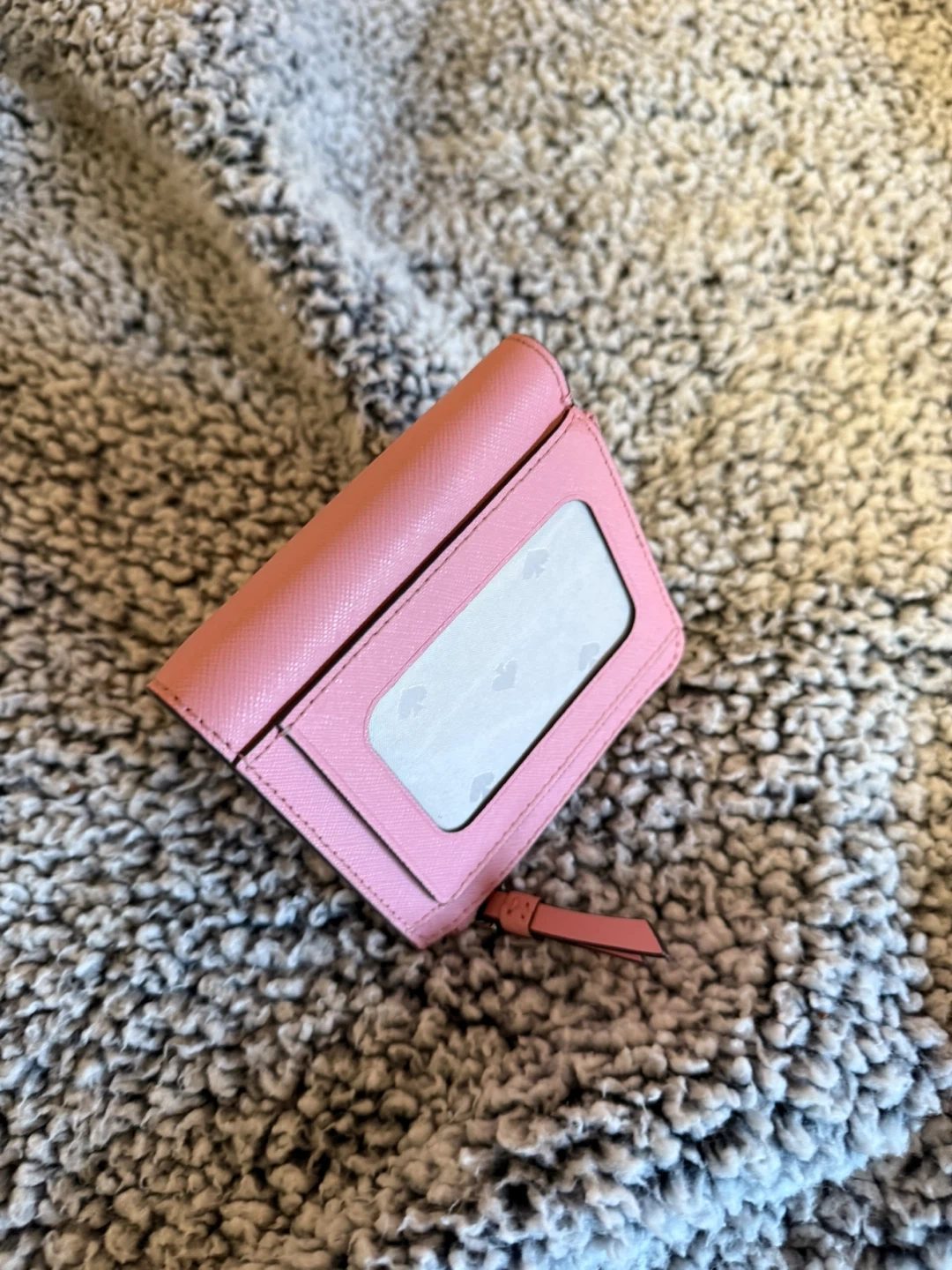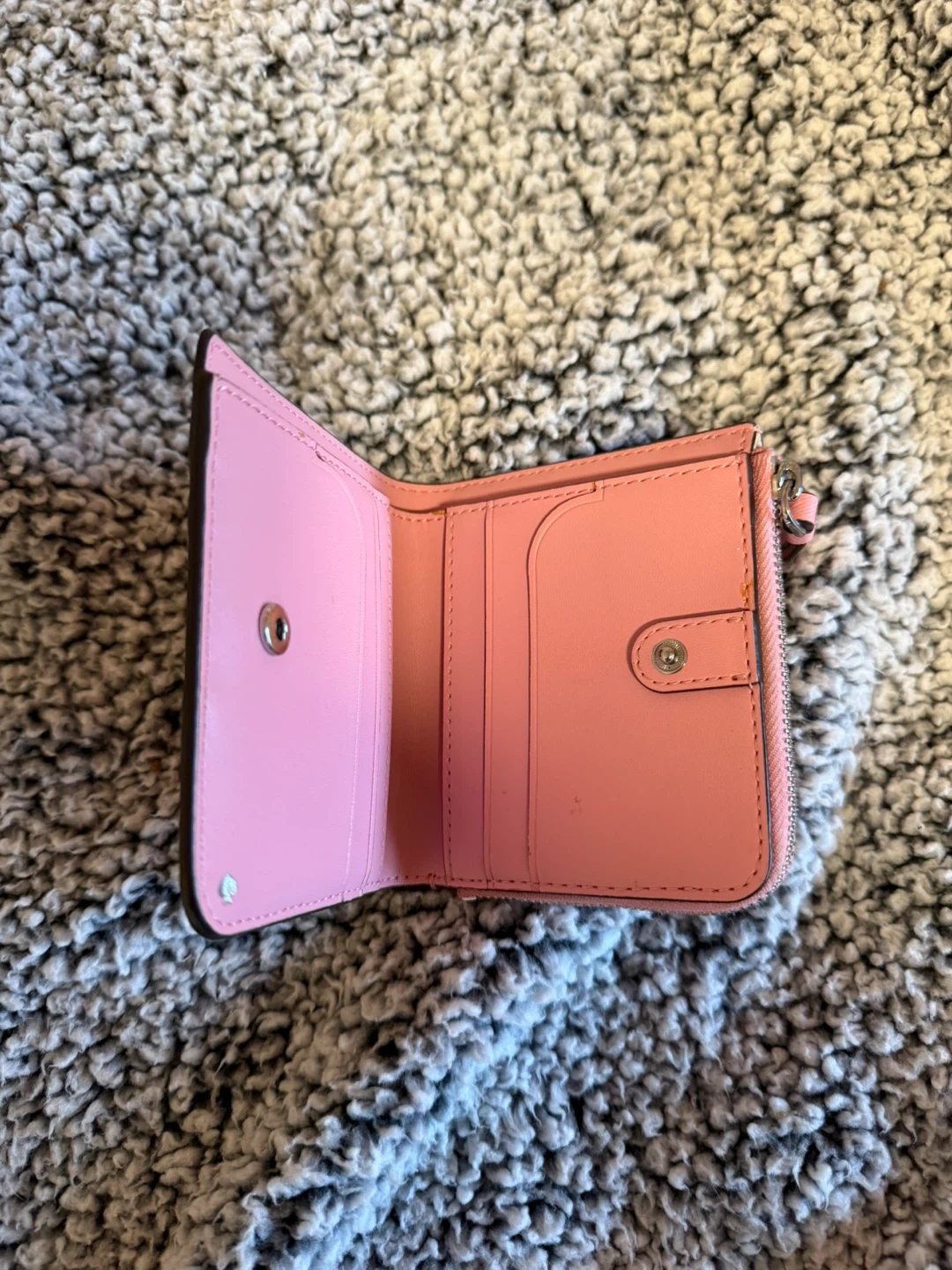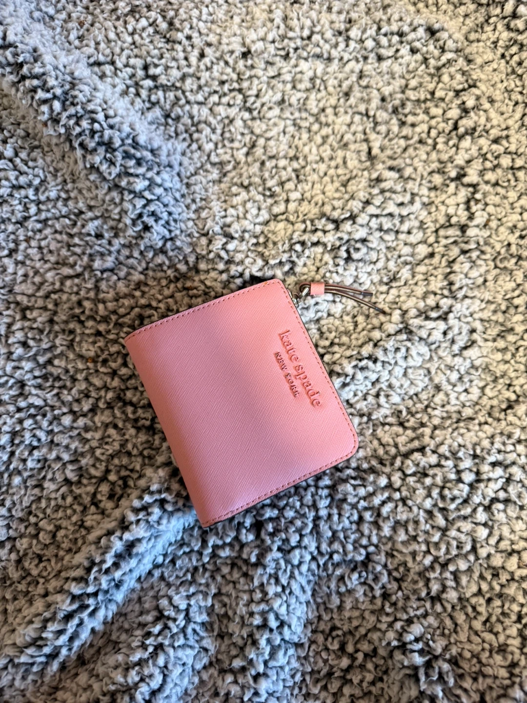Selling a cute Kate Spade wallet in a lovely shade of pink! It's in great condition and perfect for carrying your essentials. The wallet features a zippered compartment and slots for cards and IDs. It’s a stylish and practical accessory!