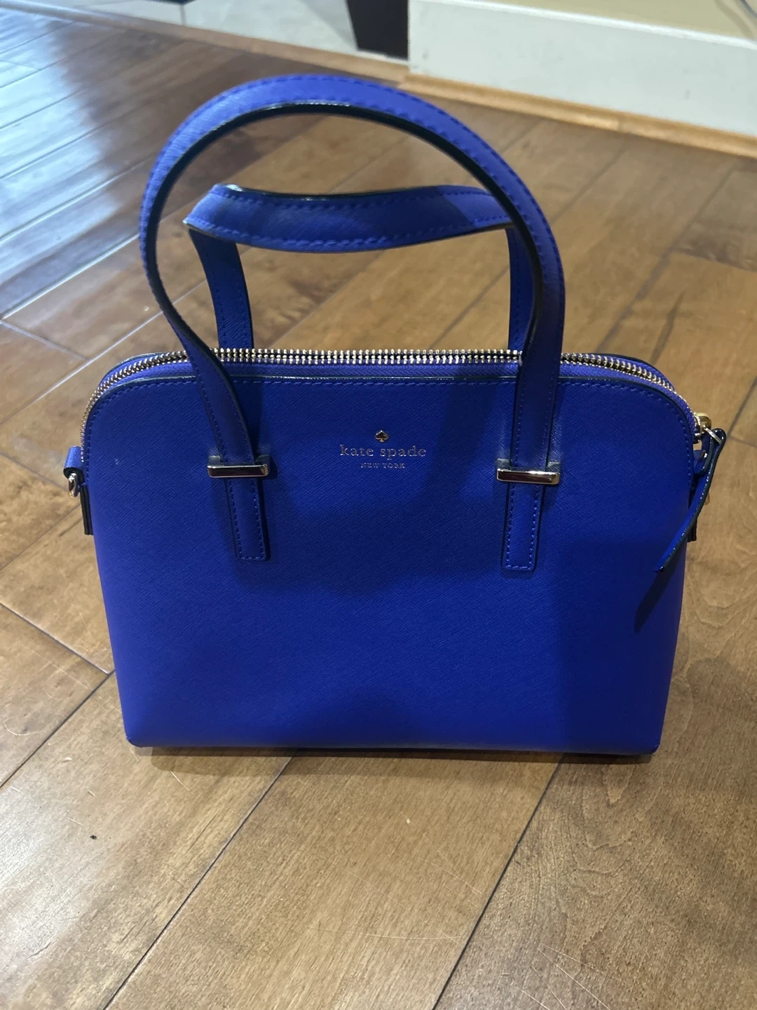Selling a Kate Spade satchel in a beautiful cobalt blue colour! It's a stylish and functional bag that's perfect for everyday use. It comes with a detachable shoulder strap for added versatility. The bag is in great condition and ready for a new home!
