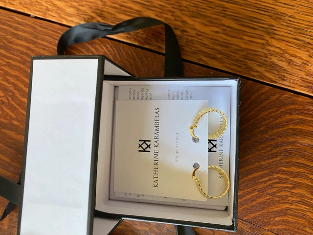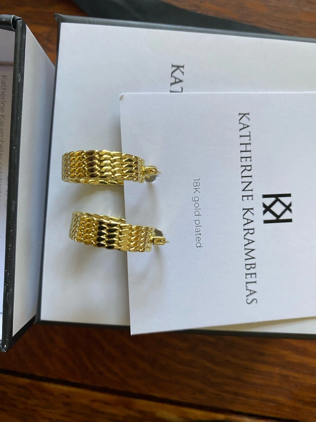 These are Katherine Karambelas 18K gold plated hoop earrings in new condition, complete with the original box and care instructions. * 18K Gold Plated * Hoop Style * Woven Design