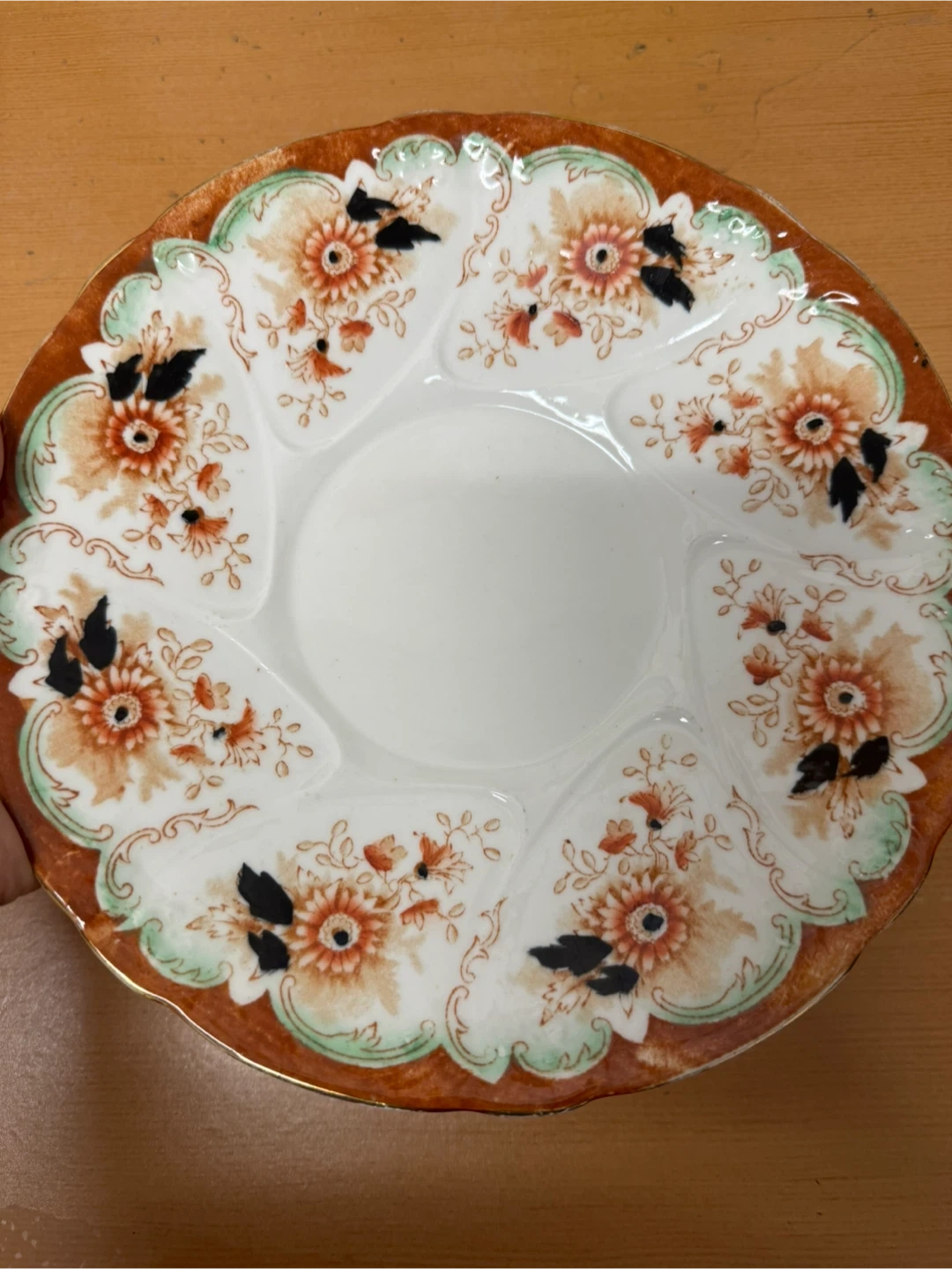 Selling a beautiful vintage plate by Kay & Co Ltd Worcester! It features a lovely floral design with orange, brown, and black flowers, and a scalloped edge. Perfect for adding a touch of elegance to your home or collection Cash Pick up near Lawrence and Keele