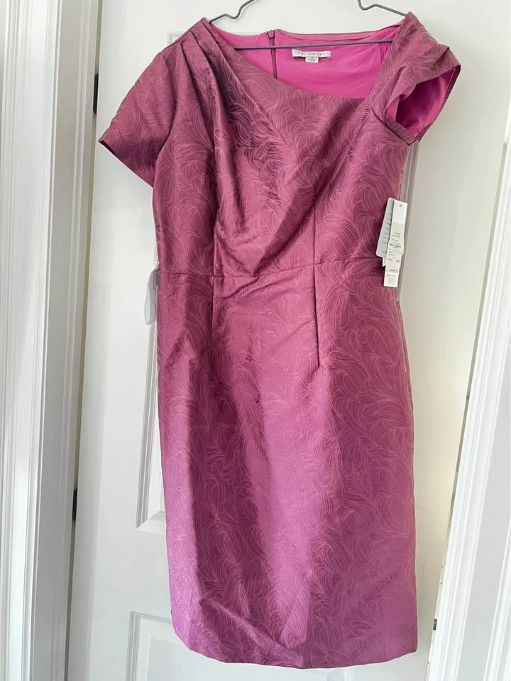 BNWT Kay Unger Heather Rose Caitlyn Jacquard Cut-Out Asymmetric Midi Dress US 12
