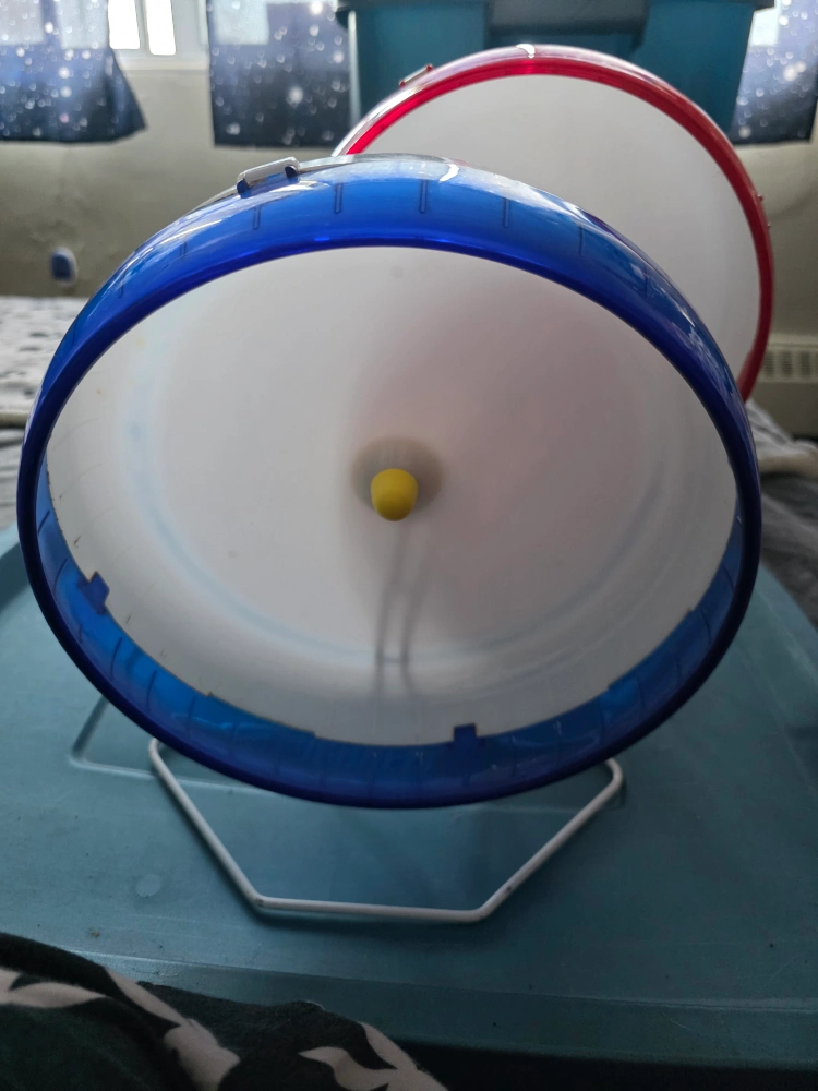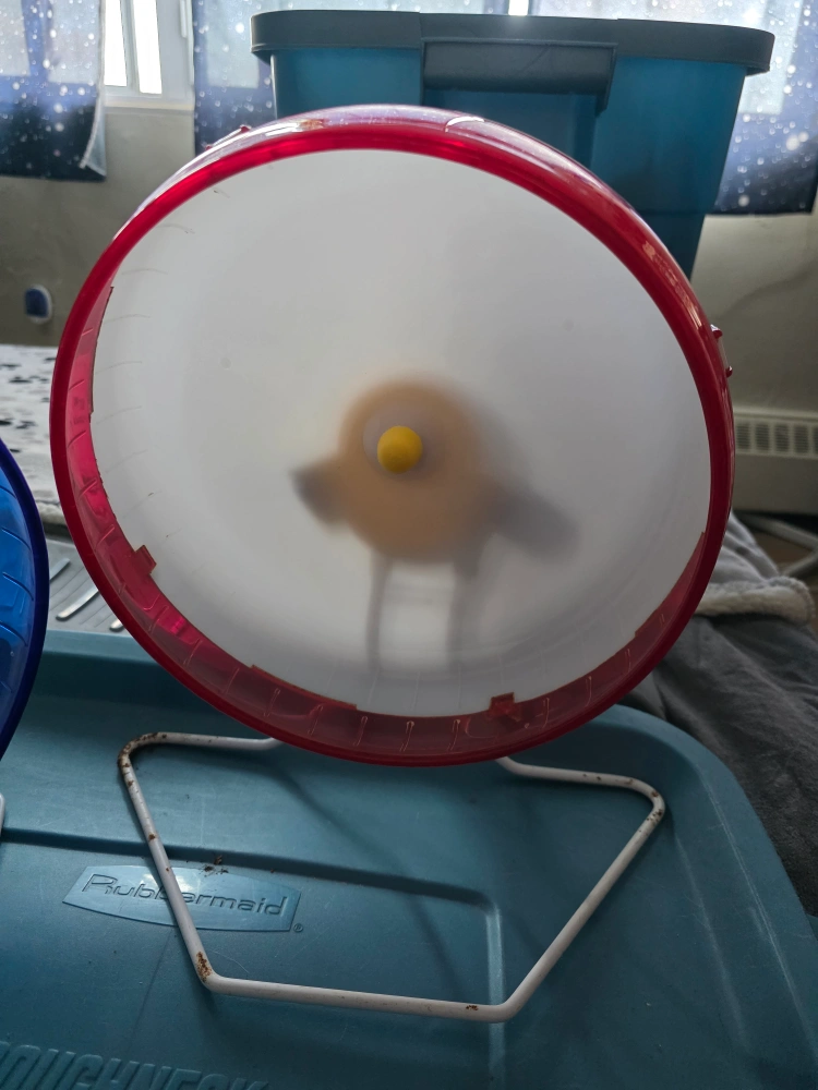 Looking to sell these hamster wheels! They're perfect for keeping your little friend active and entertained. They are silent so you won't be disturbed by squeaky noises at night. $10 each firm, your choice of red or blue.