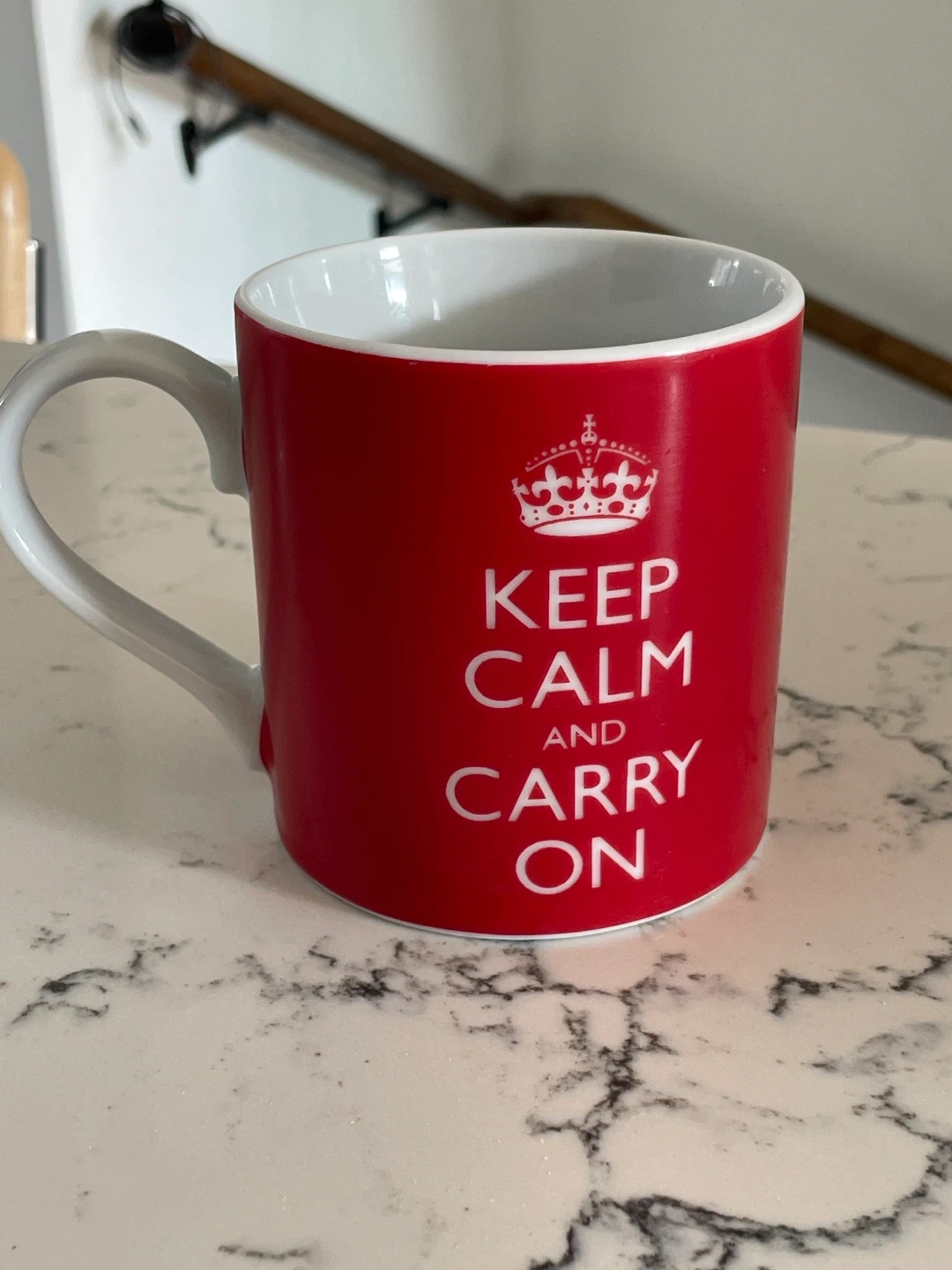Selling a Wild & Wolf mug with the iconic "Keep Calm and Carry On" design in red and white! This mug is both dishwasher and microwave safe, making it super convenient. It's in great condition and ready for a new home!