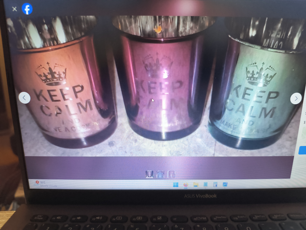 Three glass candle jars with "Keep Calm" sayings. Each jar is a different colour and has a different saying. LIMITED TIME ONLY %15 OFF
