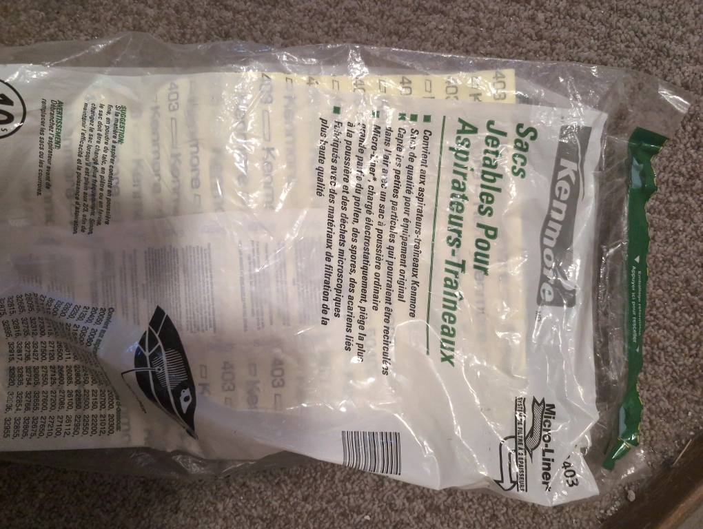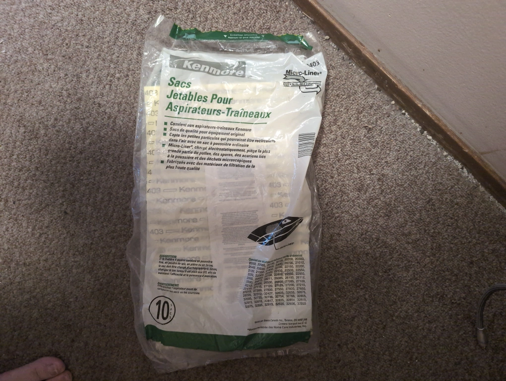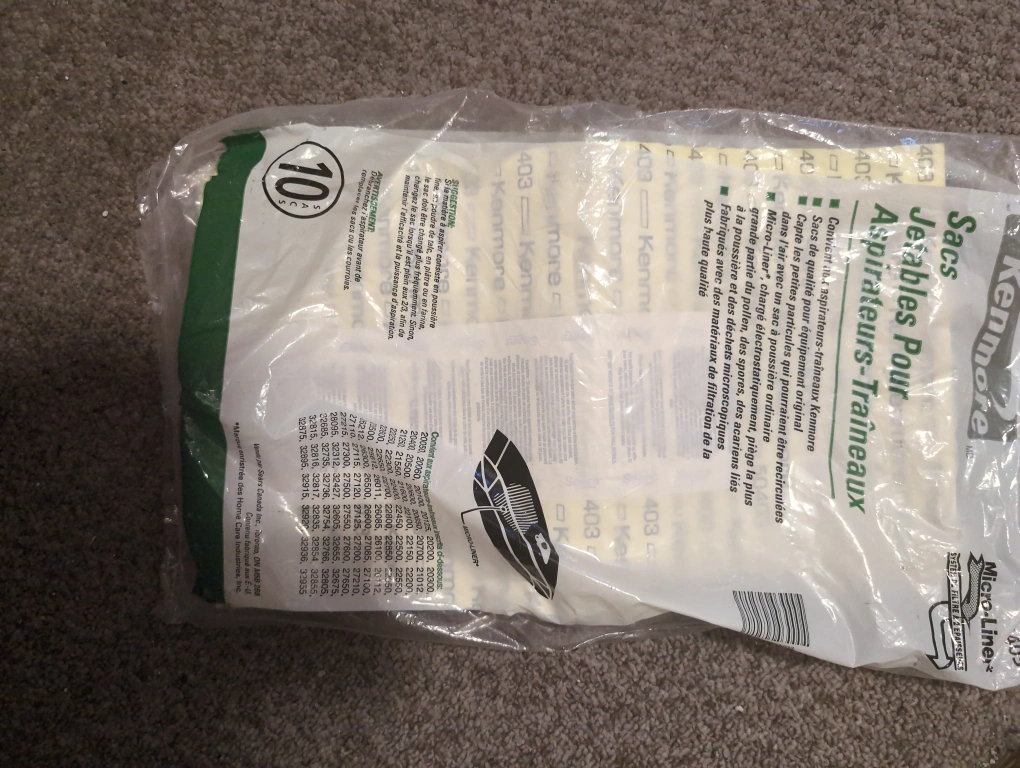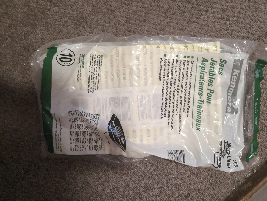 Selling a pack of Kenmore vacuum cleaner bags. These are the Micro-Liner 403 type and come with 10 bags in the pack. Convenient for Kenmore canister vacuums, these bags trap small particles and dust, ensuring high-quality filtration