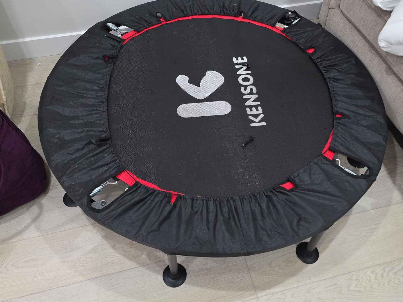 Selling a mini trampoline from Kensone. It's in good condition and ready for a new home! Perfect for indoor exercise and fun. Lightweight and portable, so you can easily move it around your home