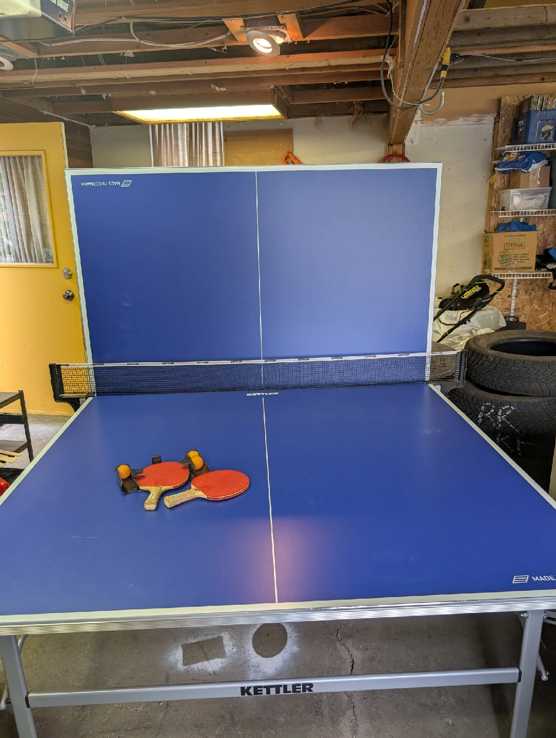 Selling a Kettler ping pong table! It comes with a net and two Kettler paddles. Ready for some fun matches!