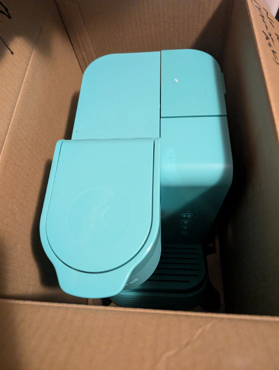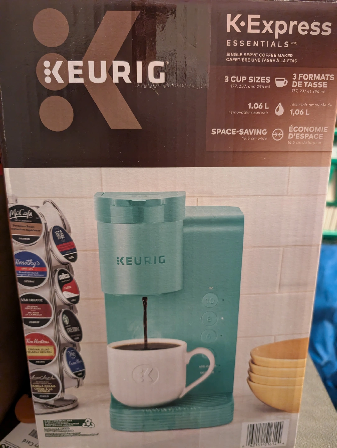 like new in box - used for one month (total of maybe 6 times) Selling a Keurig K-Express Essentials single-serve coffee maker in a lovely teal colour! This space-saving machine can brew 3 cup sizes (177, 237, and 296 ml) and has a 1.06 L removable reservoir. It's perfect for quickly making a single cup of coffee in the morning