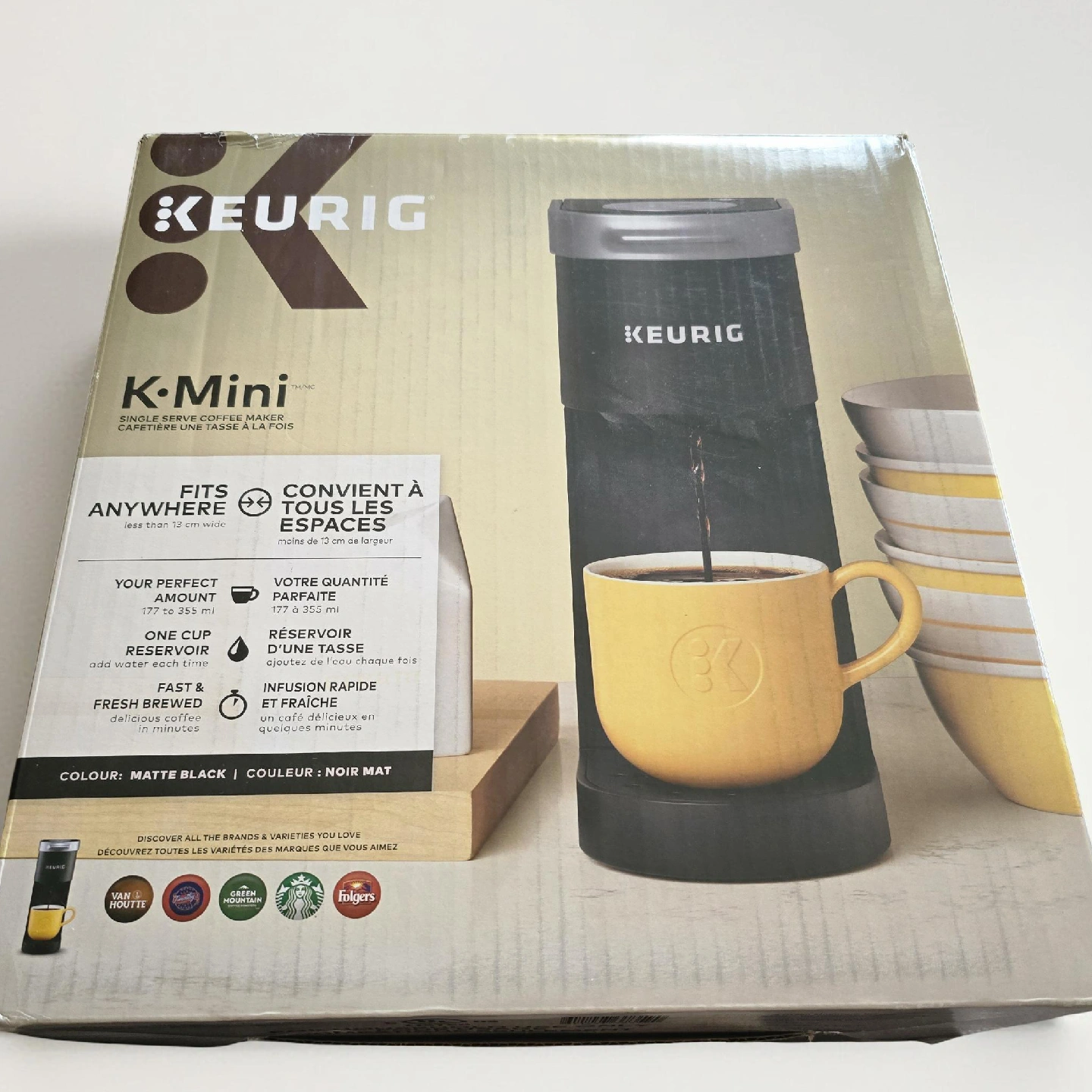 Selling a Keurig K-Mini single-serve coffee maker in matte black! It's super compact, less than 13 cm wide, so it fits anywhere. Brews a delicious coffee in minutes with a one-cup reservoir. Add water each time for a fast and fresh brew! Discover all the brands and varieties you love!