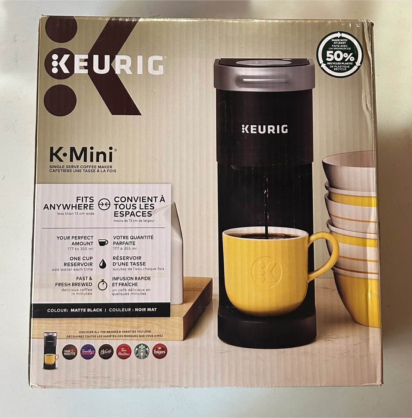 Get your daily dose of caffeine with this Keurig K-Mini single-serve coffee maker! It's perfect for small spaces, as it's less than 13 cm wide. Brews a delicious cup in minutes with its one-cup reservoir. Colour: Matte Black