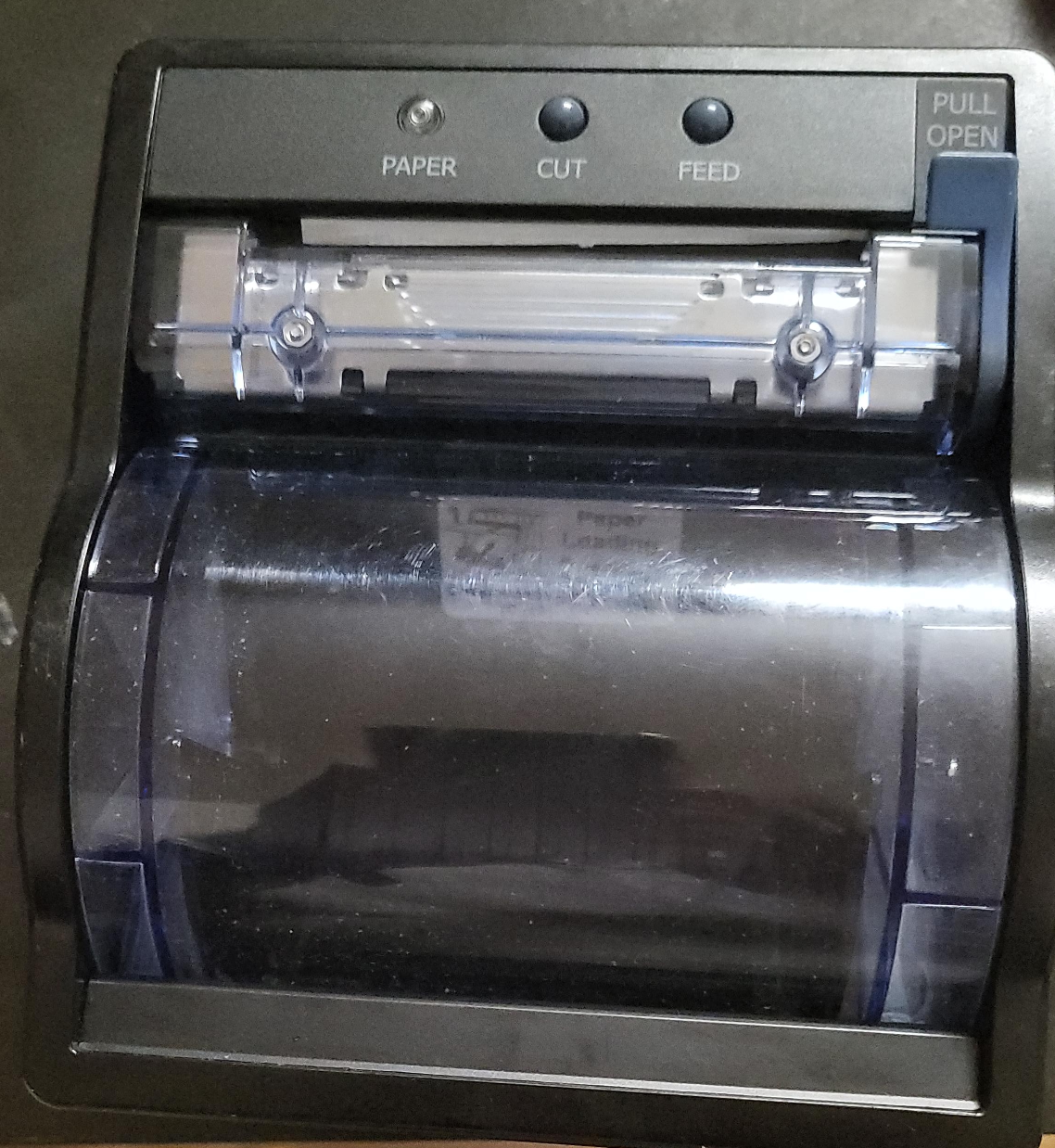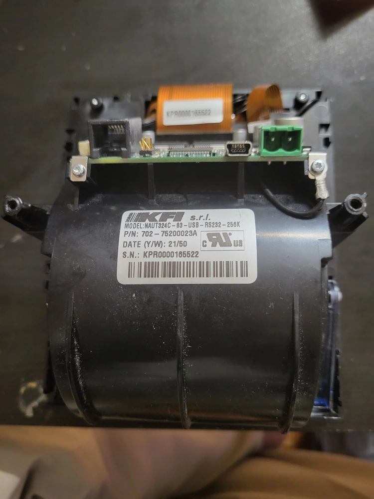 Selling a KFI NAUT324C-83 thermal printer. It appears to be in good condition and ready for use. It has Paper, Cut, and Feed buttons. The date of manufacture is 21/50.