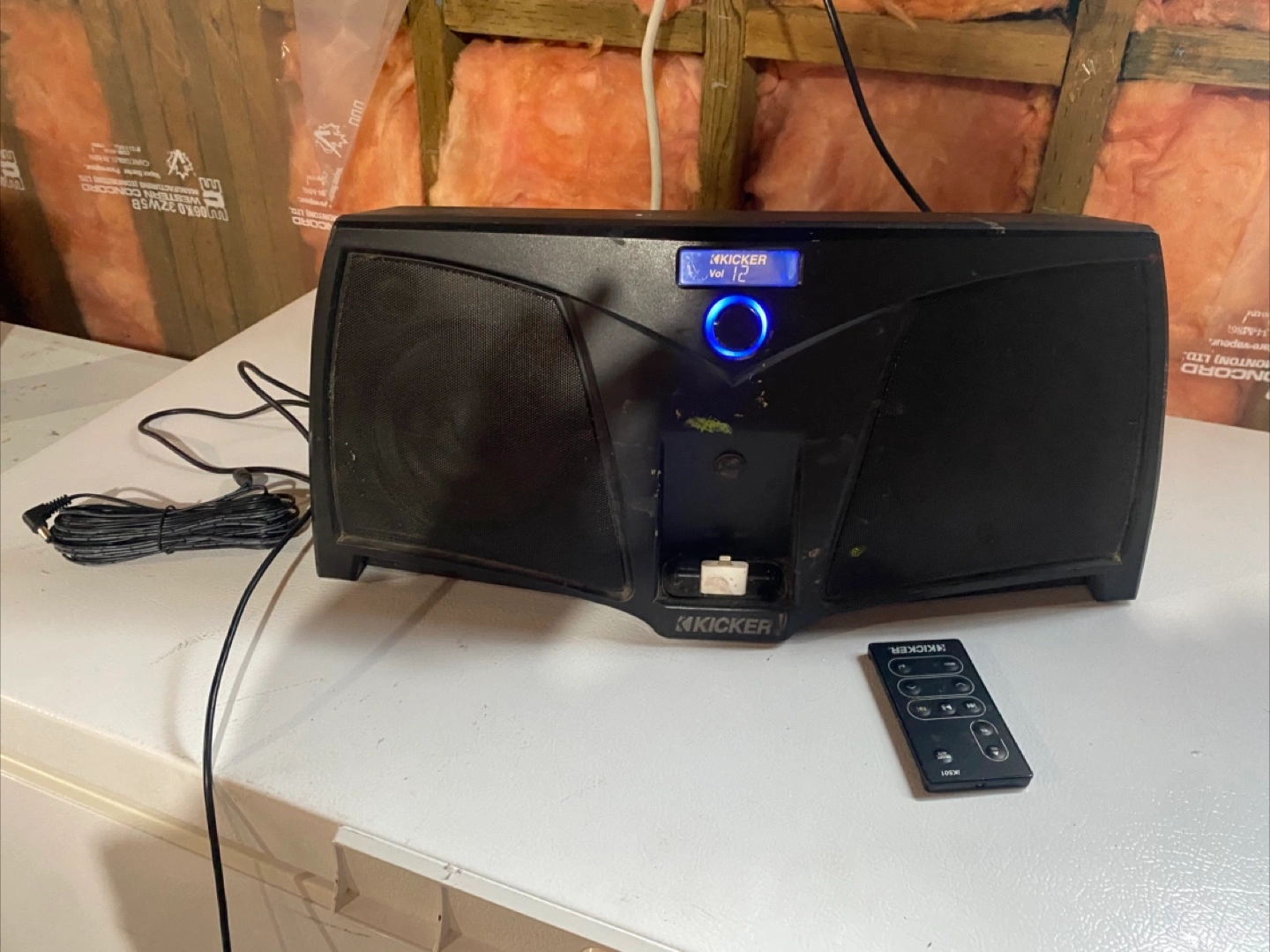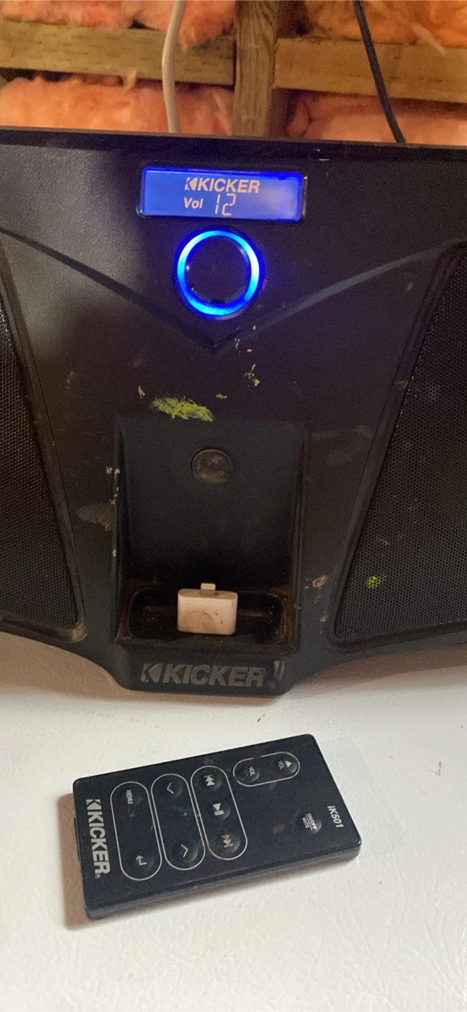 Selling a Kicker iK501 iPod docking station. It comes with a remote. It has some signs of wear, but it's still functional. Comes with apple adapter works for my iPhone 11 Pro. Comes with remote.
