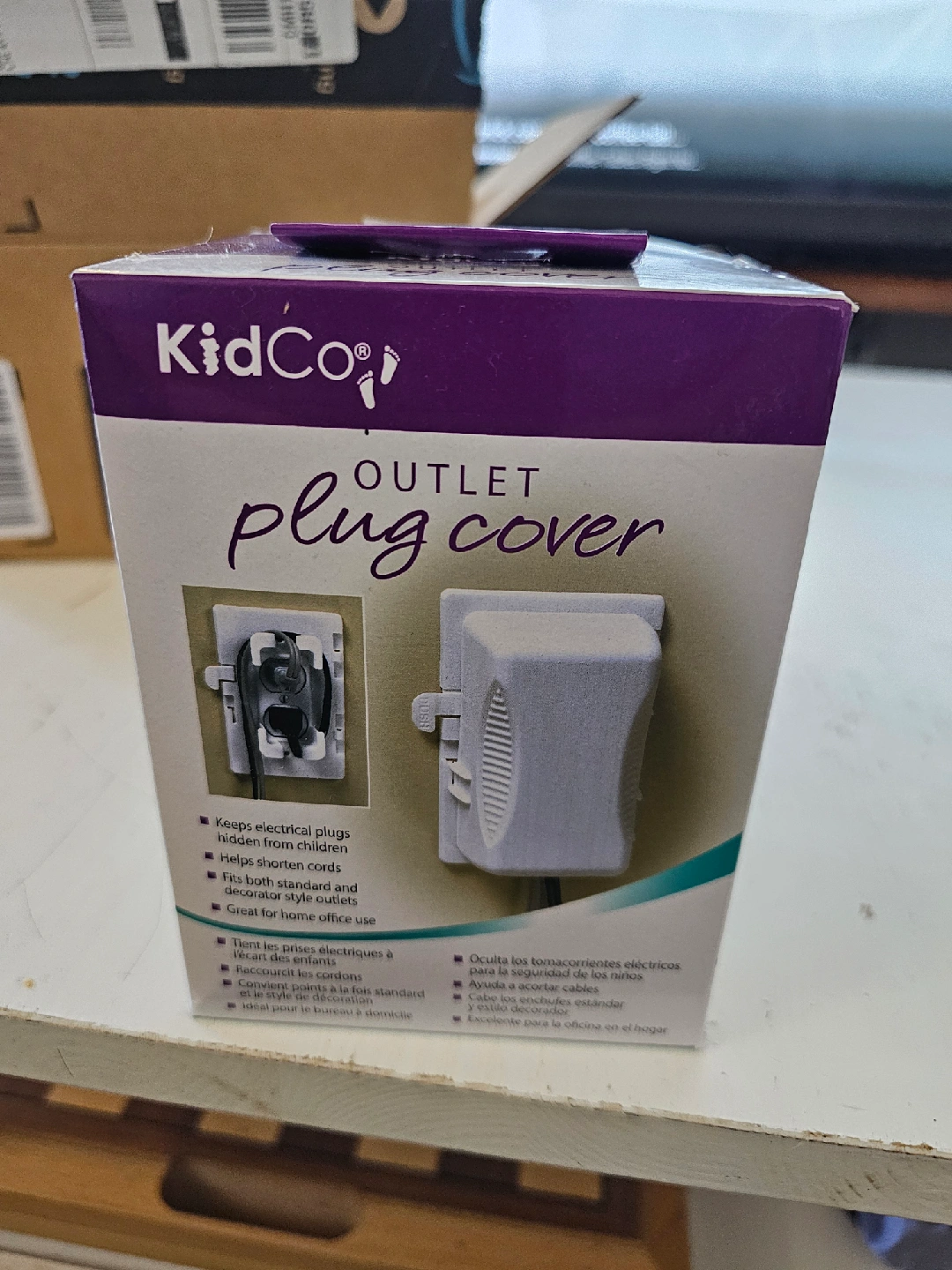 Keep your little ones safe with this KidCo outlet plug cover! It's designed to keep electrical plugs hidden from children and helps shorten cords. It fits both standard and decorator style outlets, making it great for home or office use. Box included! 3 brand new in box selling the whole lot