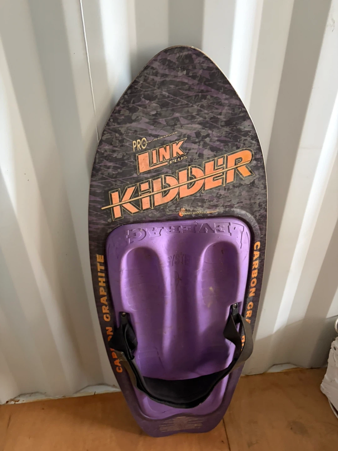 Selling a Kidder kneeboard from the Competition Series! It features a 10.5 Flex Control System and is Phase Powered. It is purple with orange accents. Perfect for some fun on the water!