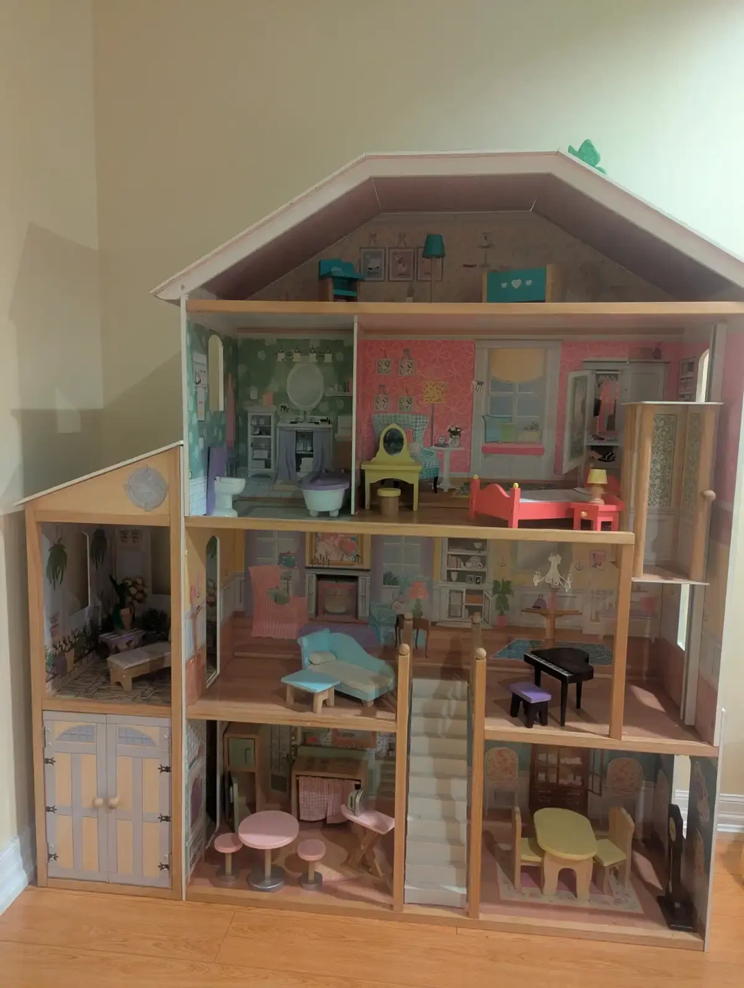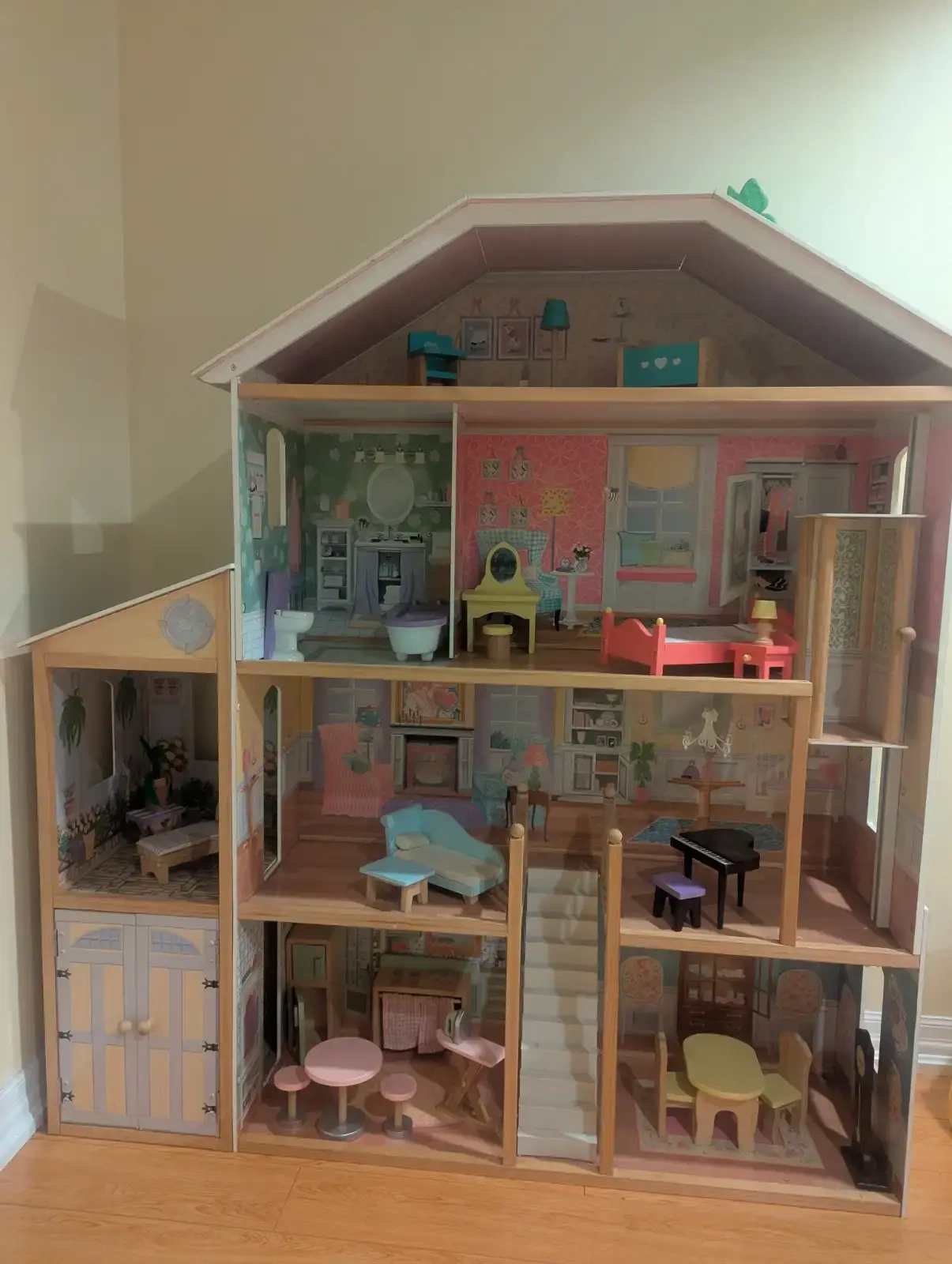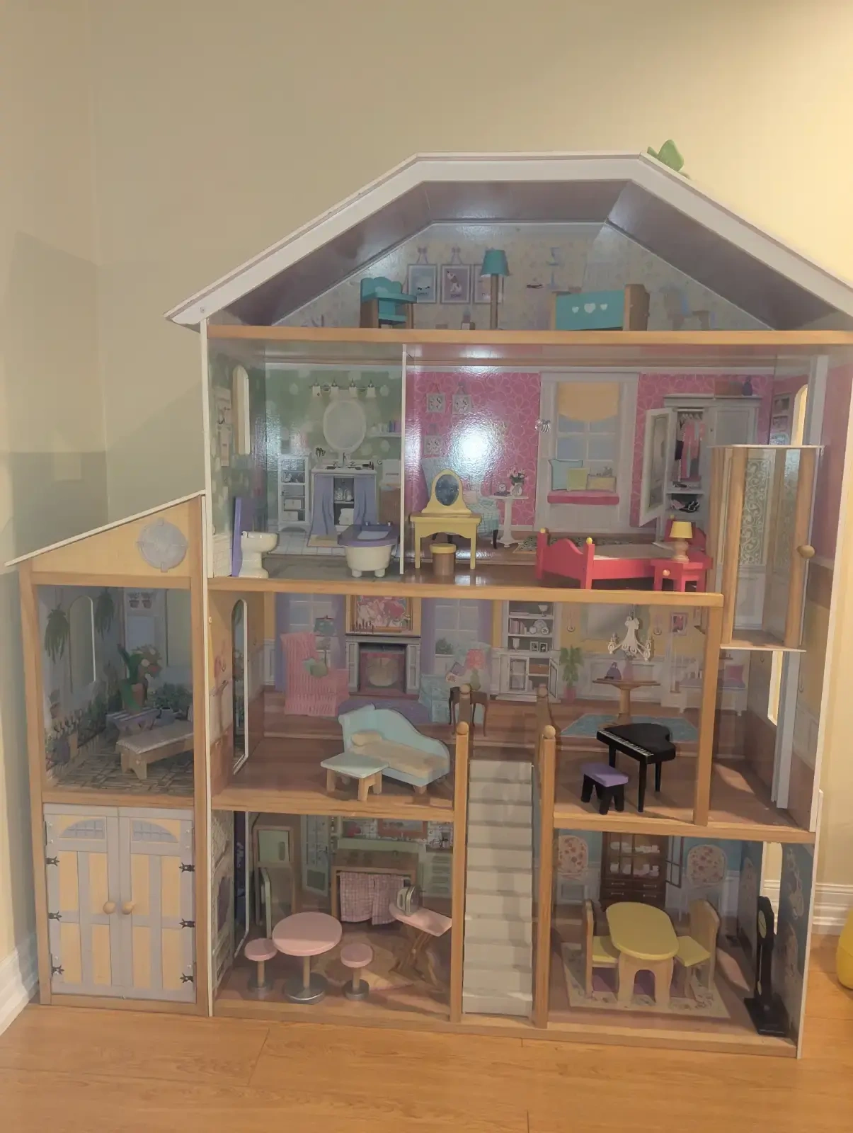 KidKraft Majestic Mansion Wooden Dollhouse with 34-Piece Accessories, Working Elevator and Garage. The toy was barely played with and is in mint condition. Details: https://www.amazon.ca/KidKraft-65252-Majestic-Dollhouse/dp/B0042F99PG
