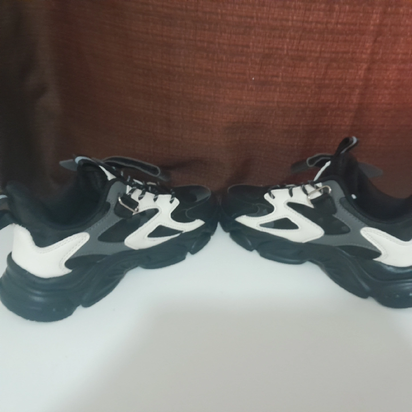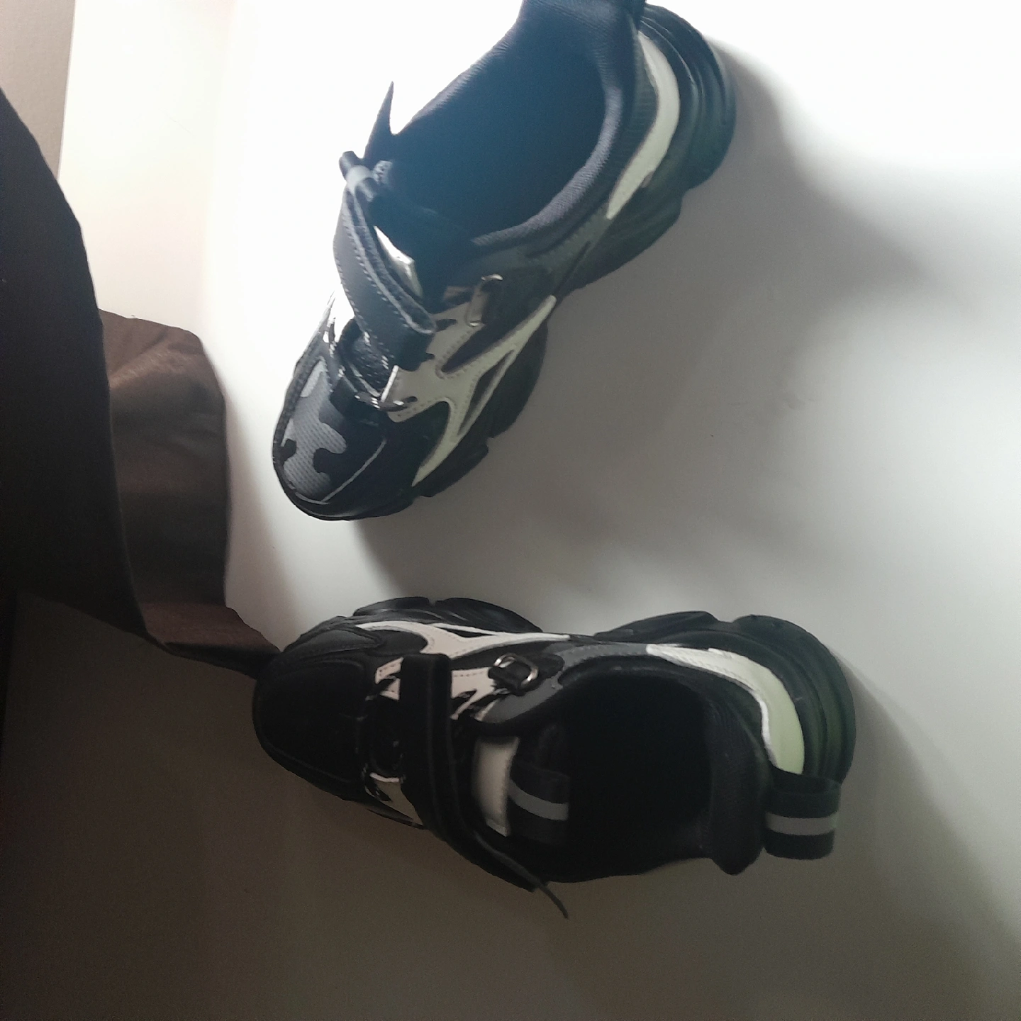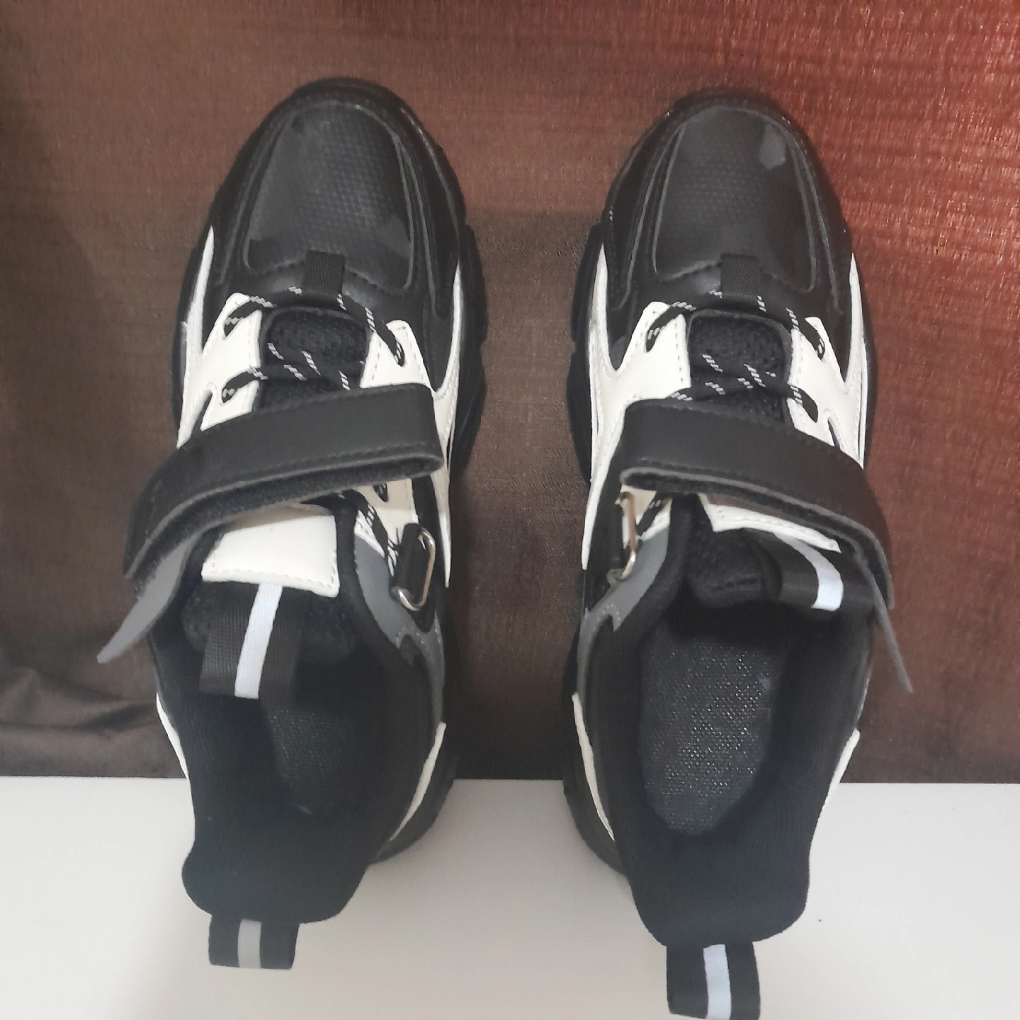 I'm selling a pair of kids' sneakers in black and white. They're in great condition and ready for a new home! Perfect for active kids.
