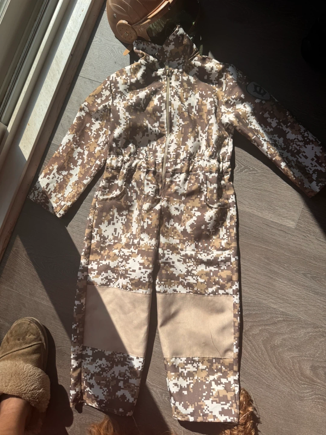 This is a cute camo costume for kids, and it comes with a helmet! It's perfect for dress-up or Halloween