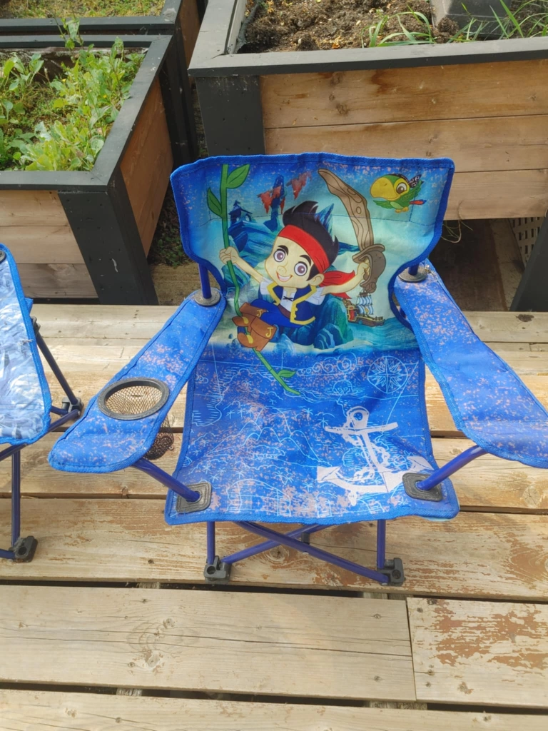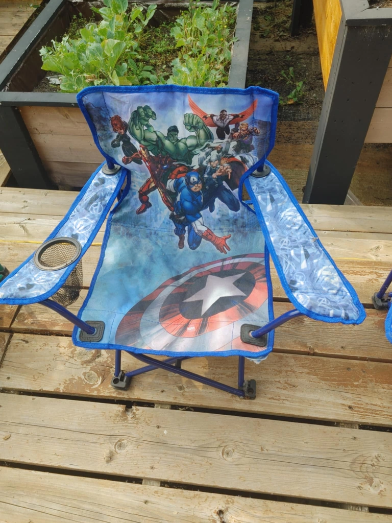 Selling three kids camping chairs. One is colourful, one has Marvel characters, and the other has Jake the Pirate on it! Perfect for camping or backyard fun 5.00 each or all 3 for 10.00