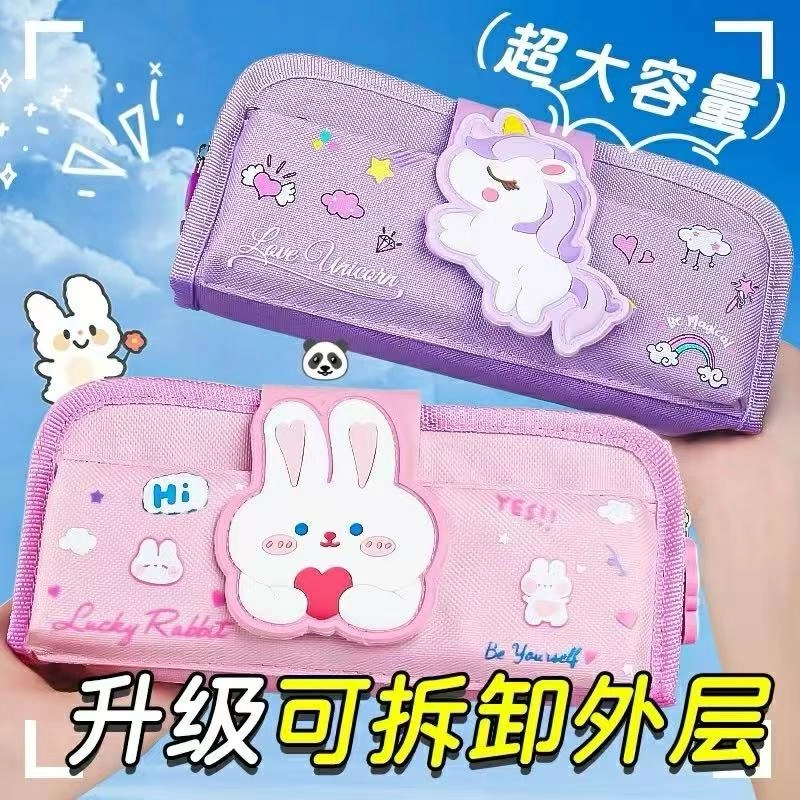 Check out these adorable cartoon-themed pencil cases! They feature cute designs like unicorns, bunnies, and robots. Perfect for keeping your stationery organized with their multi-layer storage 2 for 20$