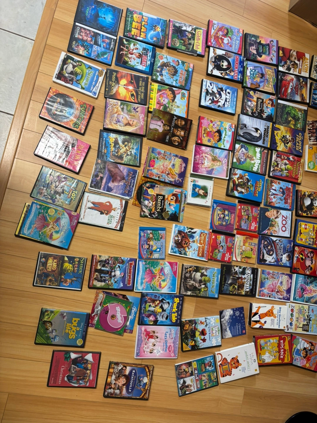 Selling a collection of kids DVDs, perfect for family movie nights or keeping the little ones entertained! Includes a variety of titles like Shrek, Barbie, Bambi, and many more. Great for a range of ages and interests!