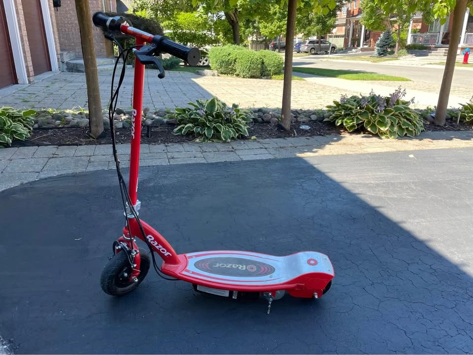 The Razor E100 electric scooter is the perfect introduction to the world of electric-powered fun. Designed to help riders ages 8 and up ease into their first motorized ride, the E100 pairs a kid-sized frame with intuitive, hand operated throttle and brake controls and a 100-watt motor – just enough speed to thrill young riders. Hop on, kick to start, twist the throttle and get a taste of the fun and freedom of an electric-powered Razor ride at speeds up to 10 mph (16 km/h) for up to 40 minutes of continuous use.