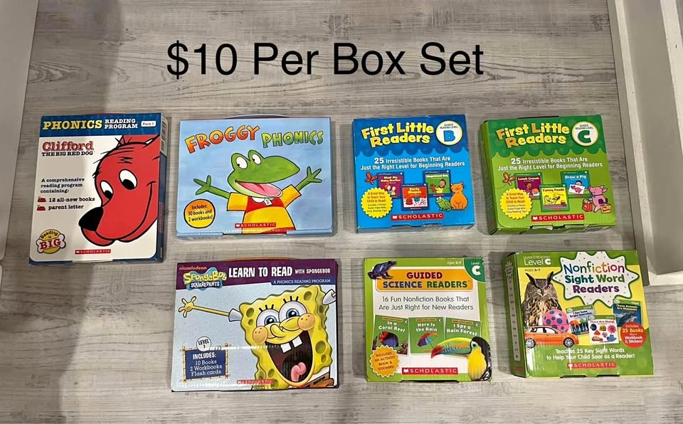 Kids Learning to Read Box Sets- See various pictures for prices. Star Wars Boxsets- $8 each Pick up- Queensway & Islington