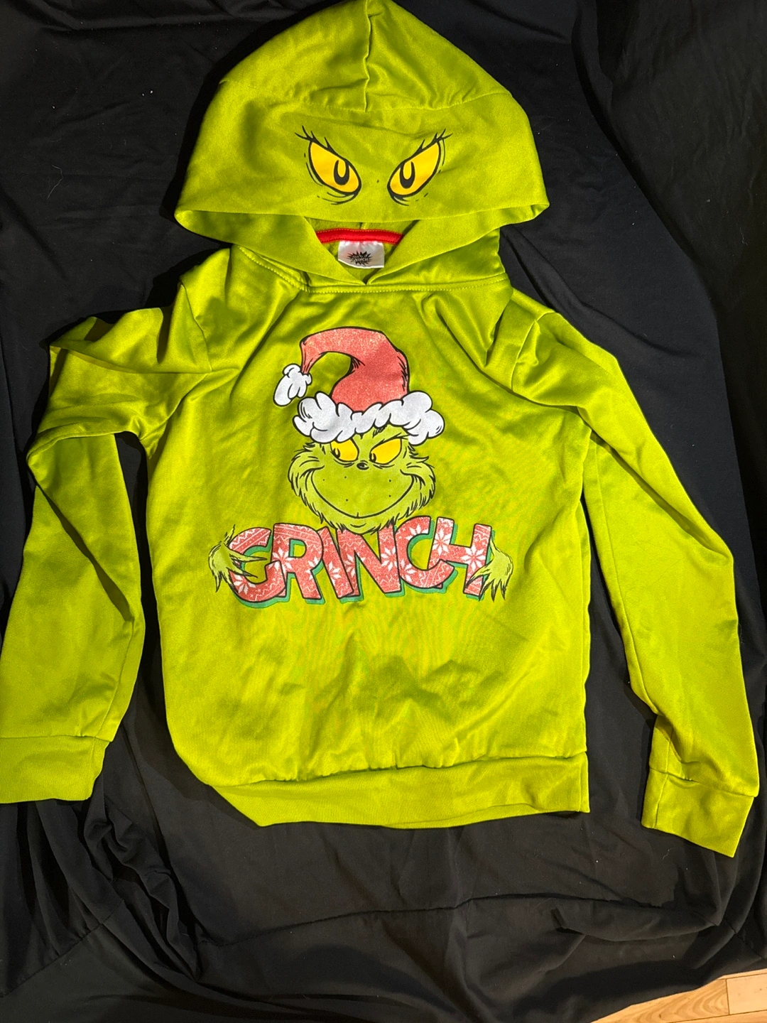 Selling a kids' Grinch hoodie and a Ladybug costume. Both are in good condition and ready for a new home! Also included are two baby outfits.