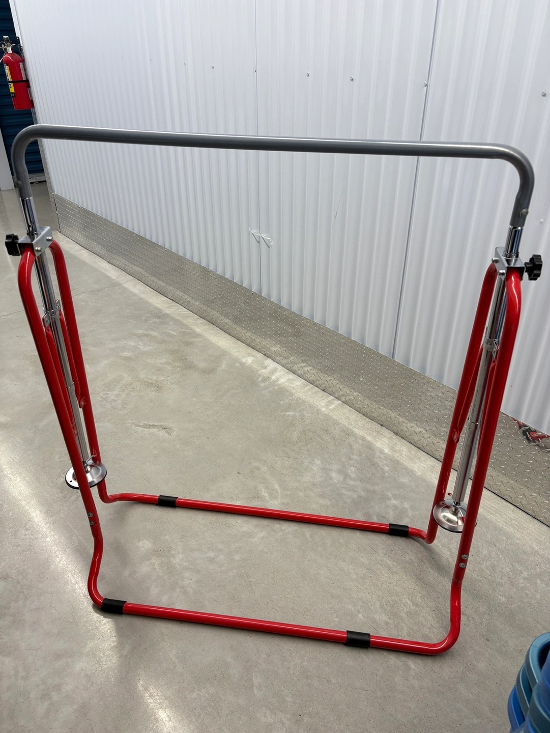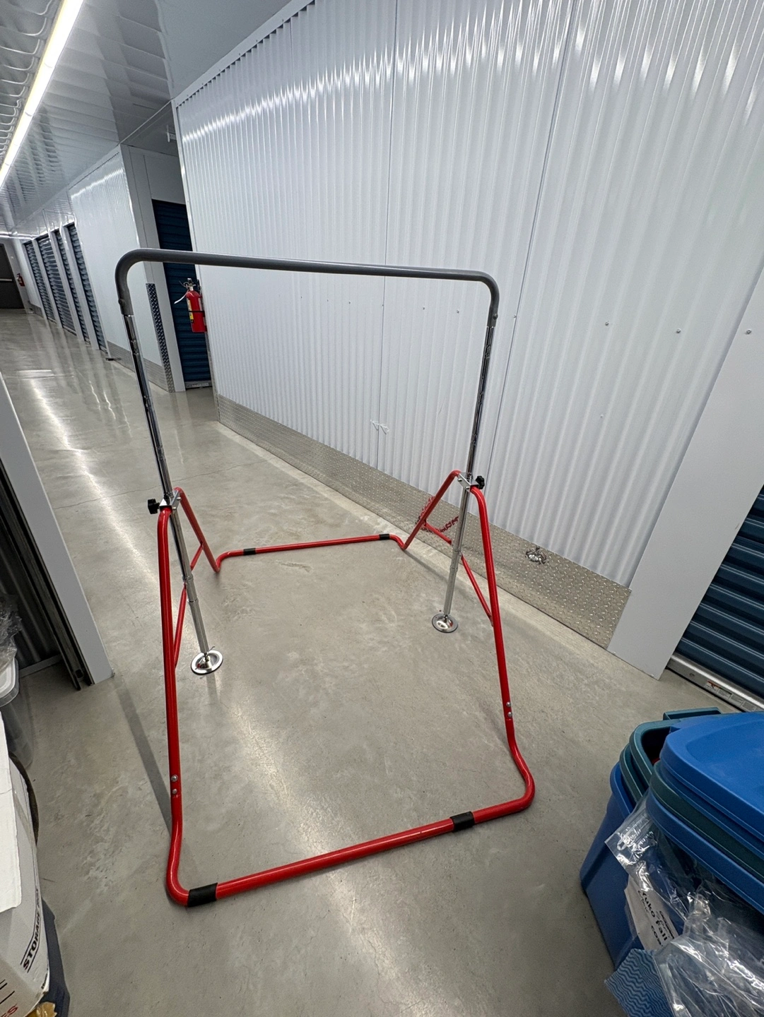 “ Great condition “ Red and silver gymnastics bar. Adjustable height. Great for home use. Portable and easy to store. Pickup Victoria Village area