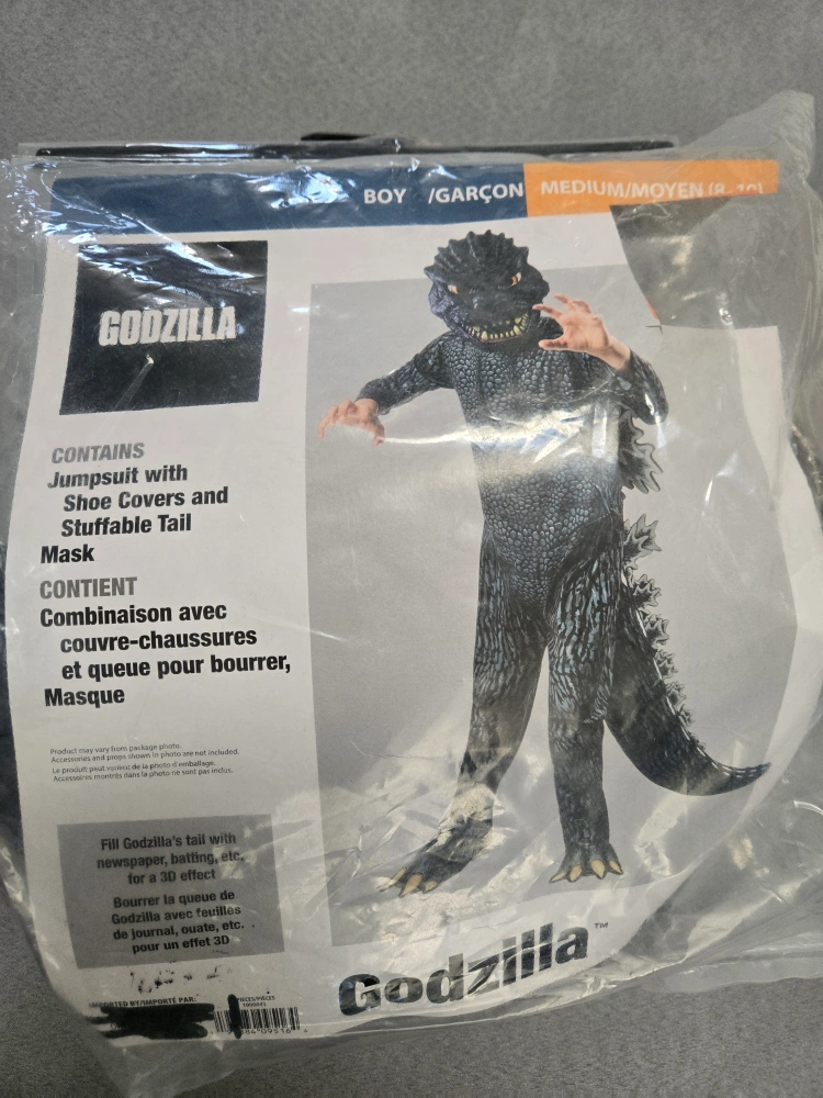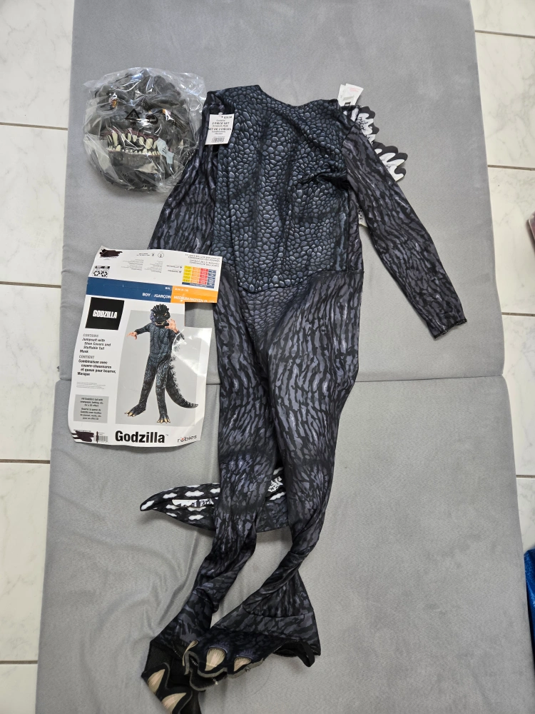 Kids godzilla halloween costume w mask NEW Brand new halloween costume Size in photos Price firm Pick up near 22nd skytrain new west