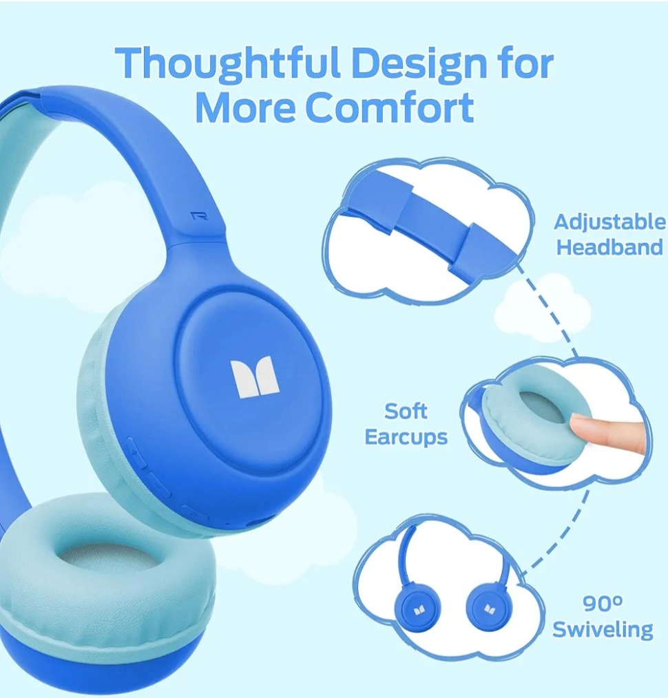 Monster Cute SK100 Kids Bluetooth Headphones, 85/94dB Safe Volume Limited, 60 Hours Playtime, Bluetooth 6.0, On Ear Toddler Headsets with Built-in Mic, Lightweight Wireless Headphones for Kids, Blue in color, brand new only box open never used once.