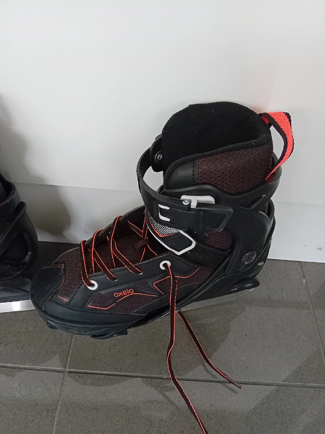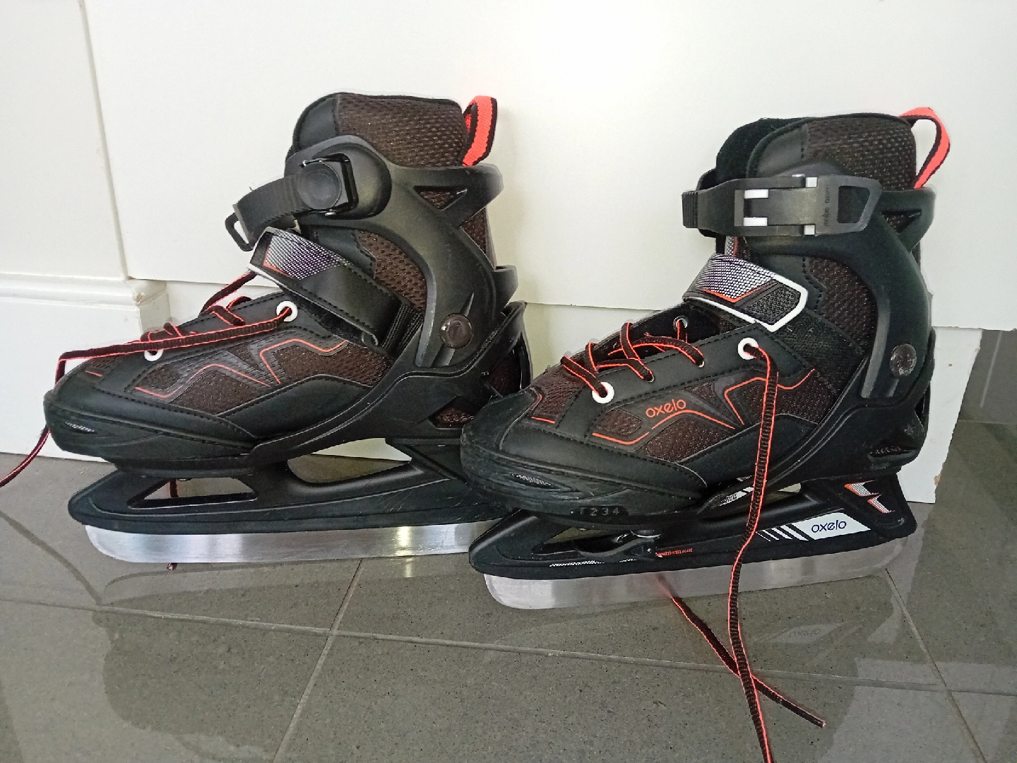 Selling a pair of Oxelo ice skates in good condition! They're black and orange, and ready for some fun on the ice :) insole length is 21.5 cm and it is adjustable. from size 3.5 to size 6