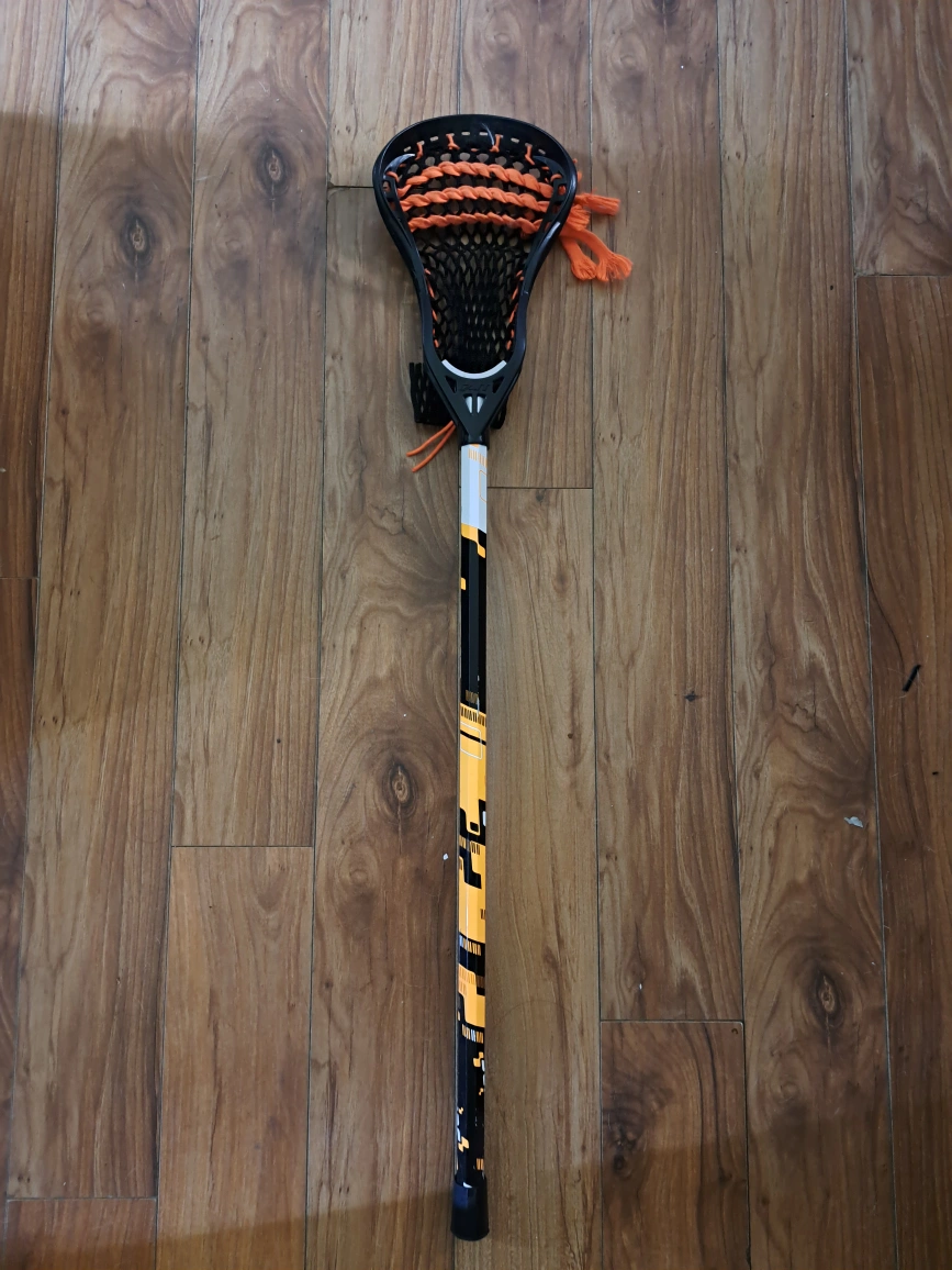 Selling a lacrosse stick with a black and orange colour scheme. It's in great shape and ready for the field!