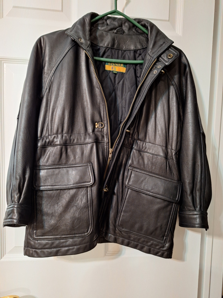 brand : Danier Kids real leather, size Medium. colour black. will fit 5 to 6 years of age. like new, excellent condition.