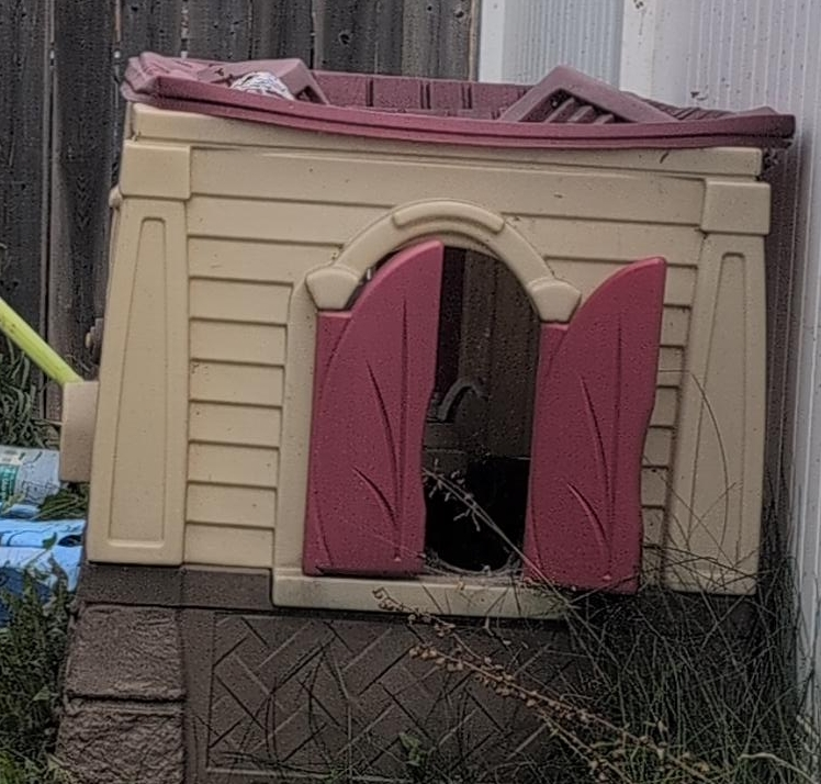 Selling a used kids' plastic playhouse. It's perfect for outdoor fun and imaginative play in the backyard. It has a cute design with a door and windows. It's in good condition and ready for a new home for lots of fun!