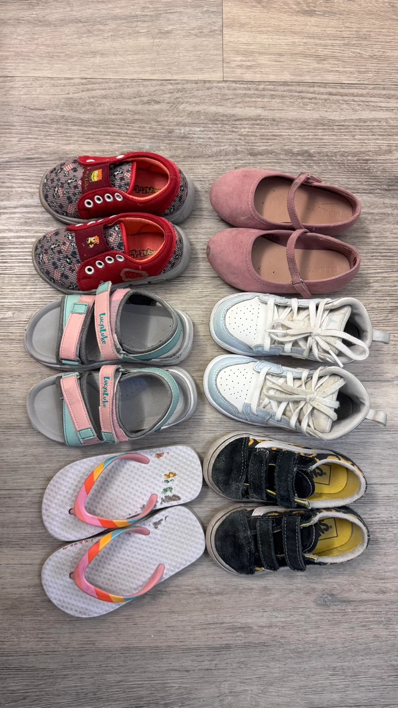 Selling a bundle of gently used kids' shoes. Includes a variety of styles and sizes, perfect for growing feet! There are sandals, sneakers, and more. All in good condition and ready for a new home Nike 8c Vans 7c Old Navy pink 8c Red 7c Flip flops 7c