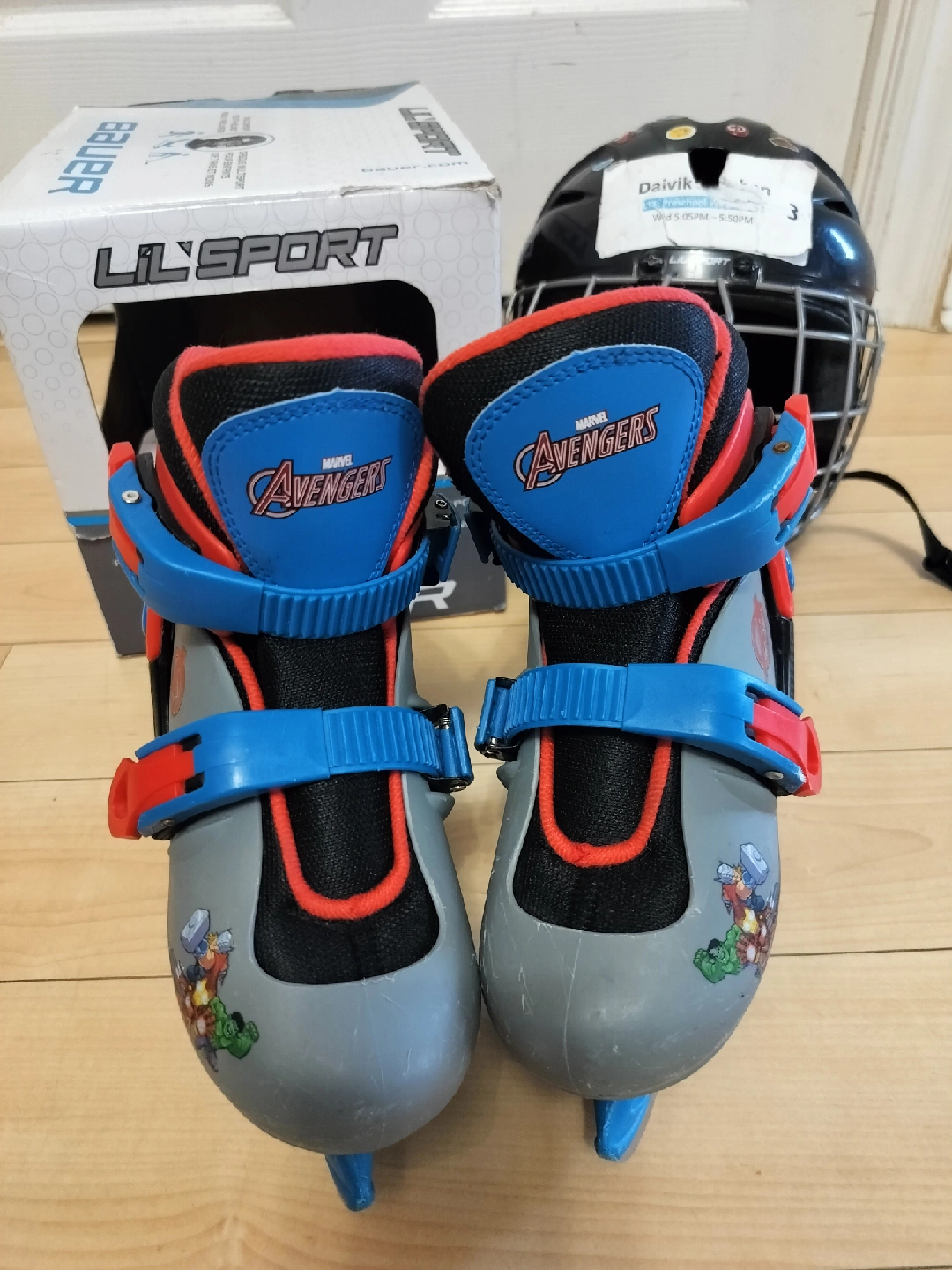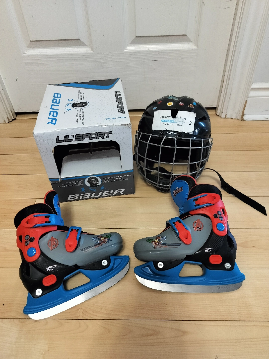 Selling a Bauer Lil' Sport youth hockey skate and helmet set! The skates are size Y8-Y11, extendable (size can be increased or decreased) and can fit kids of various ages. Skates and helmet are suitable for kids from 3 years to 8 years. Price is included for both. Only helmet - $15 Only skates - $15 Both - $25 Pick up location: 23 Cox Boulevard Markham.