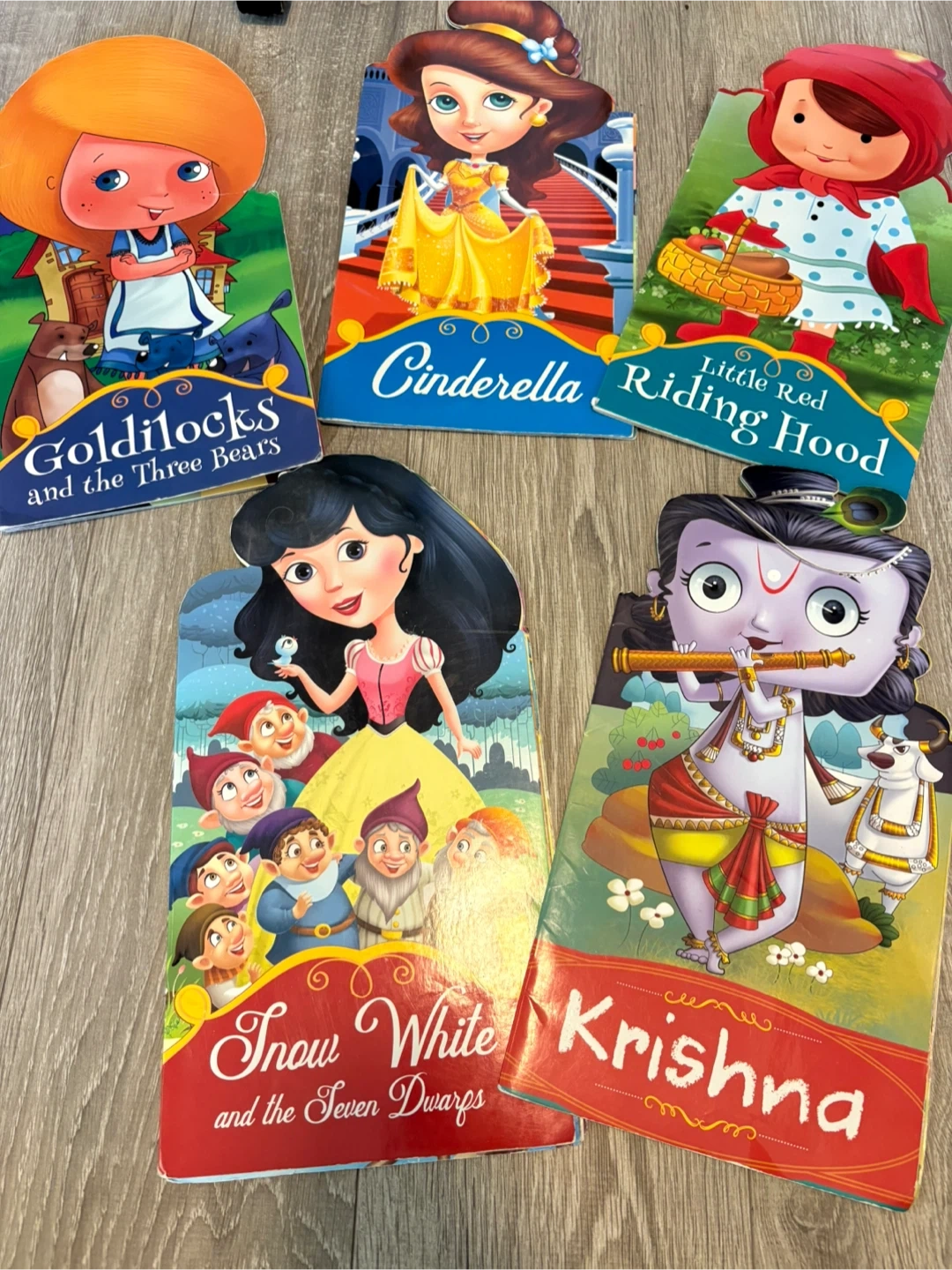 Selling gently used set of adorable children's story books! Includes titles like Goldilocks and the Three Bears, Cinderella, Little Red Riding Hood, Snow White and the Seven Dwarfs, and Krishna.