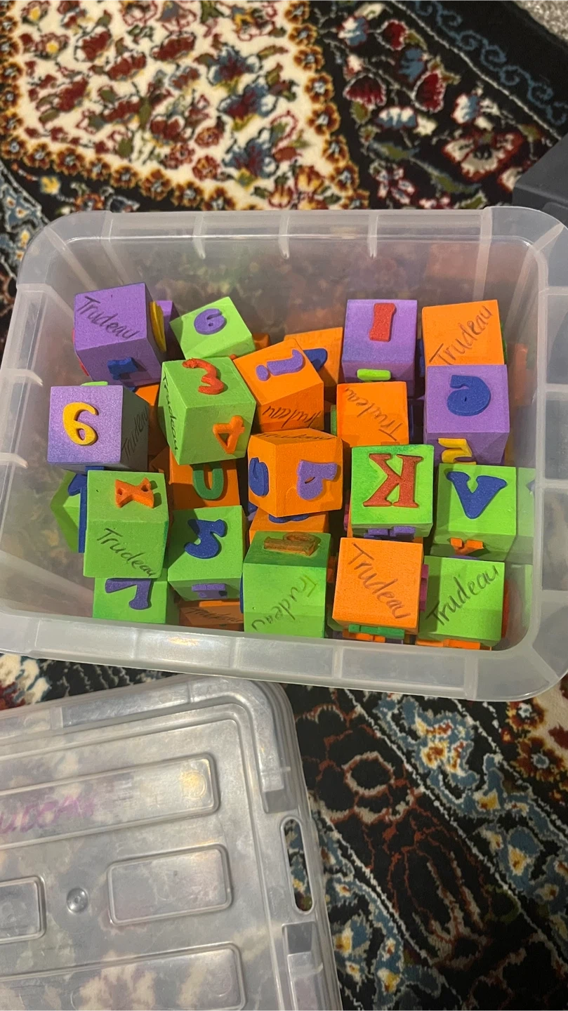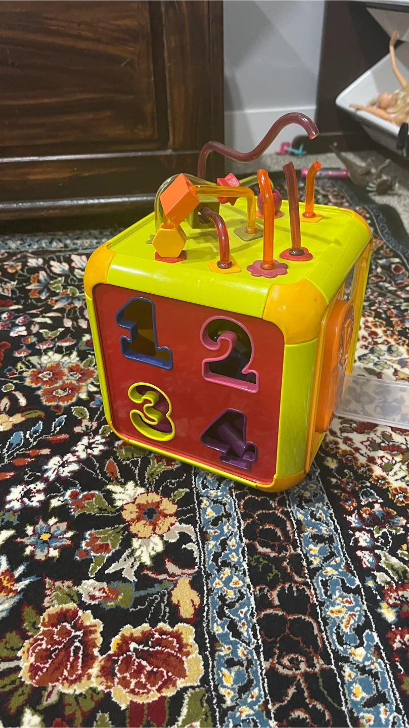 Selling a bundle of fun kids' toys! Included are some character masks, a cute pull toy, an activity cube, and a set of blocks. Perfect for keeping the little ones entertained! Each $5